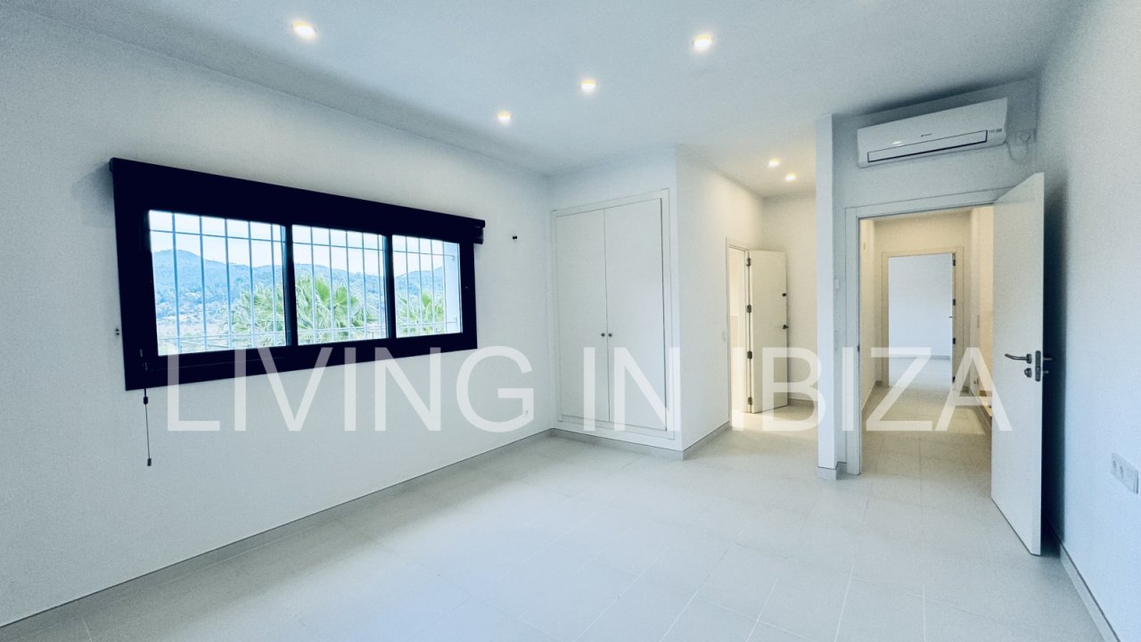 Moderne Villa zur langfristigen Vermietung in Sant Joan de Labritja, Ibiza, Panoramablick, Pool, 3 Schlafzimmer