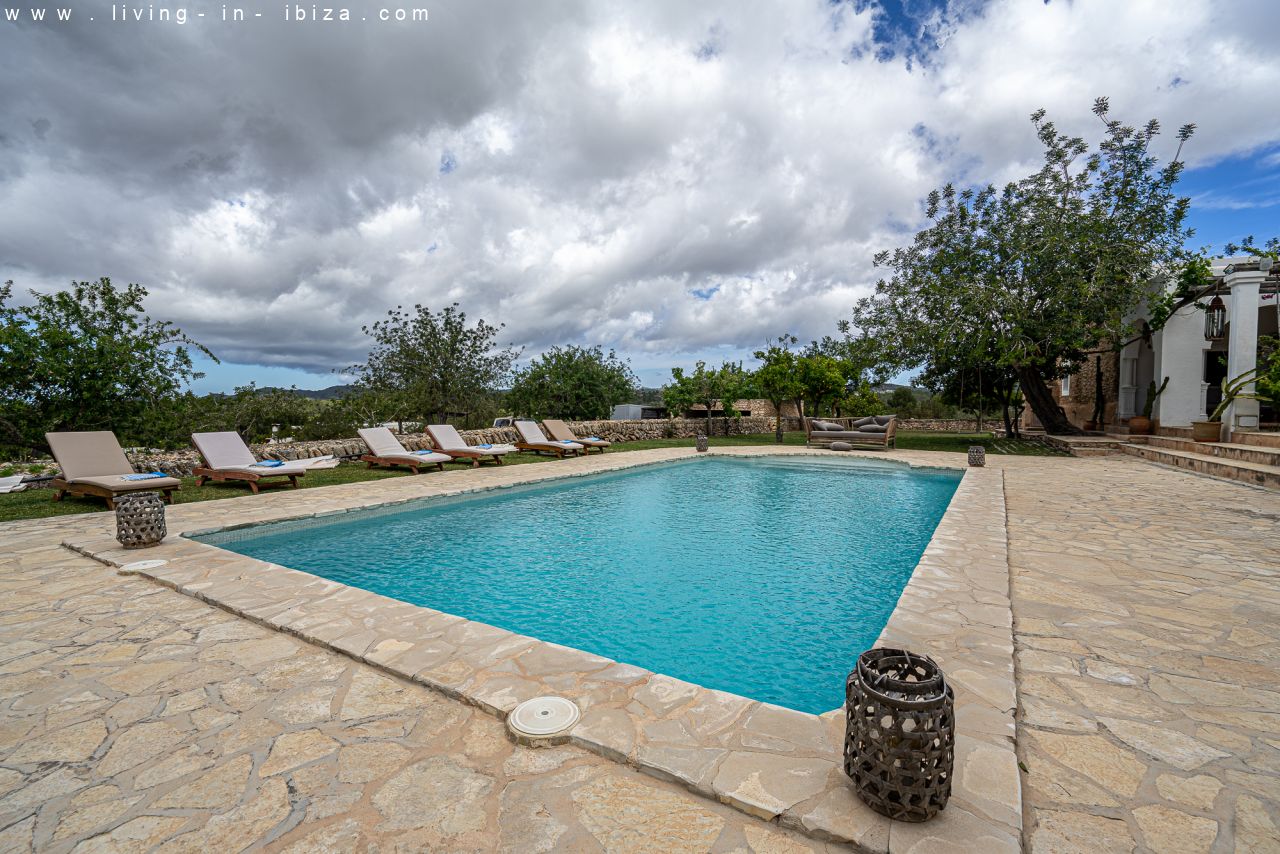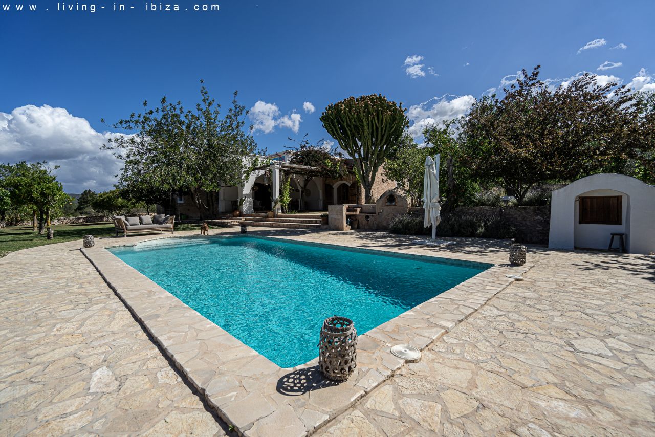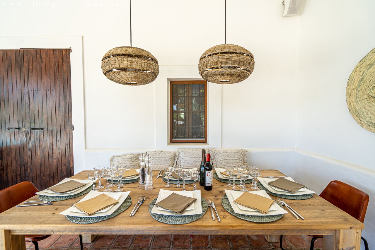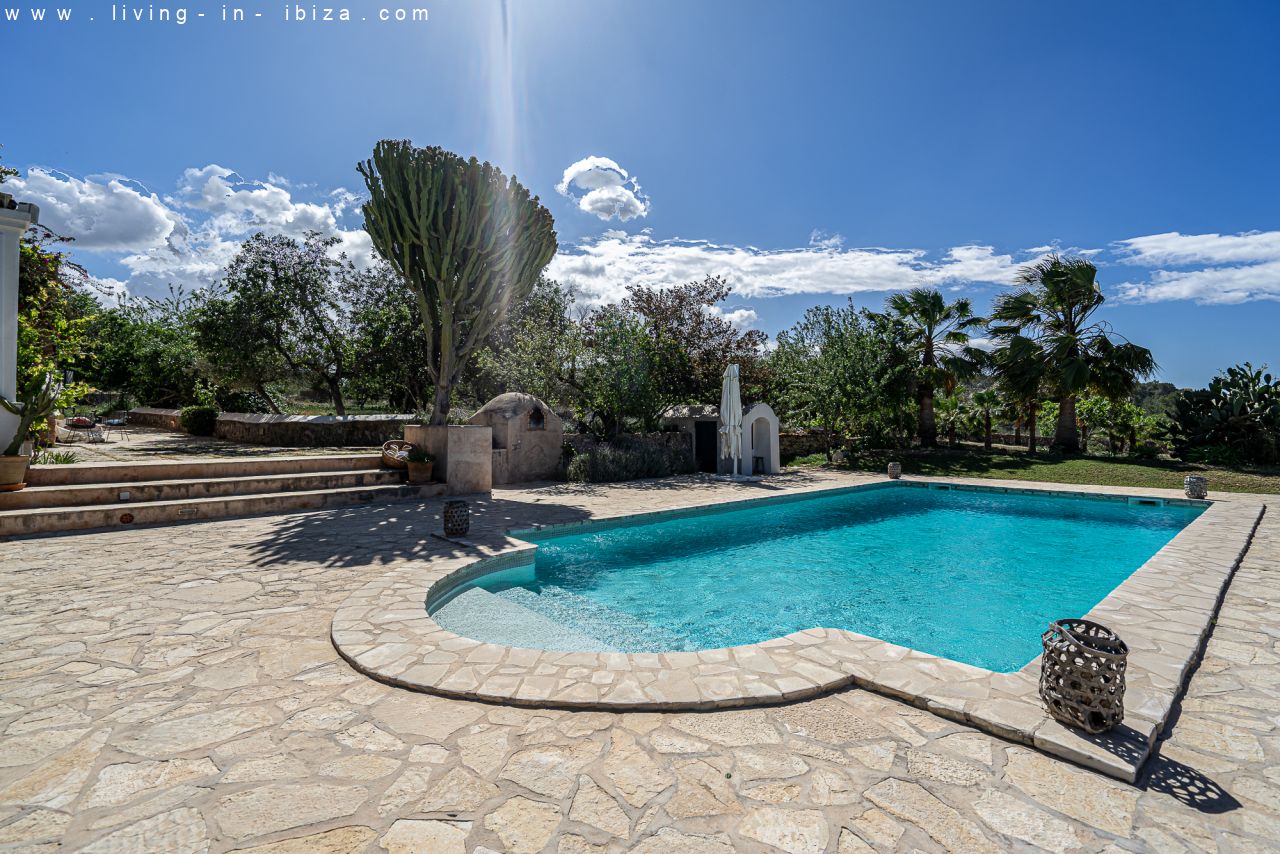 Langzeitmiete / Jahresvertrag, Finca pavesa of dream komplett renoviert, in der Gegend von Buscastell, Ibiza. Blick auf die Bucht von San Antonio