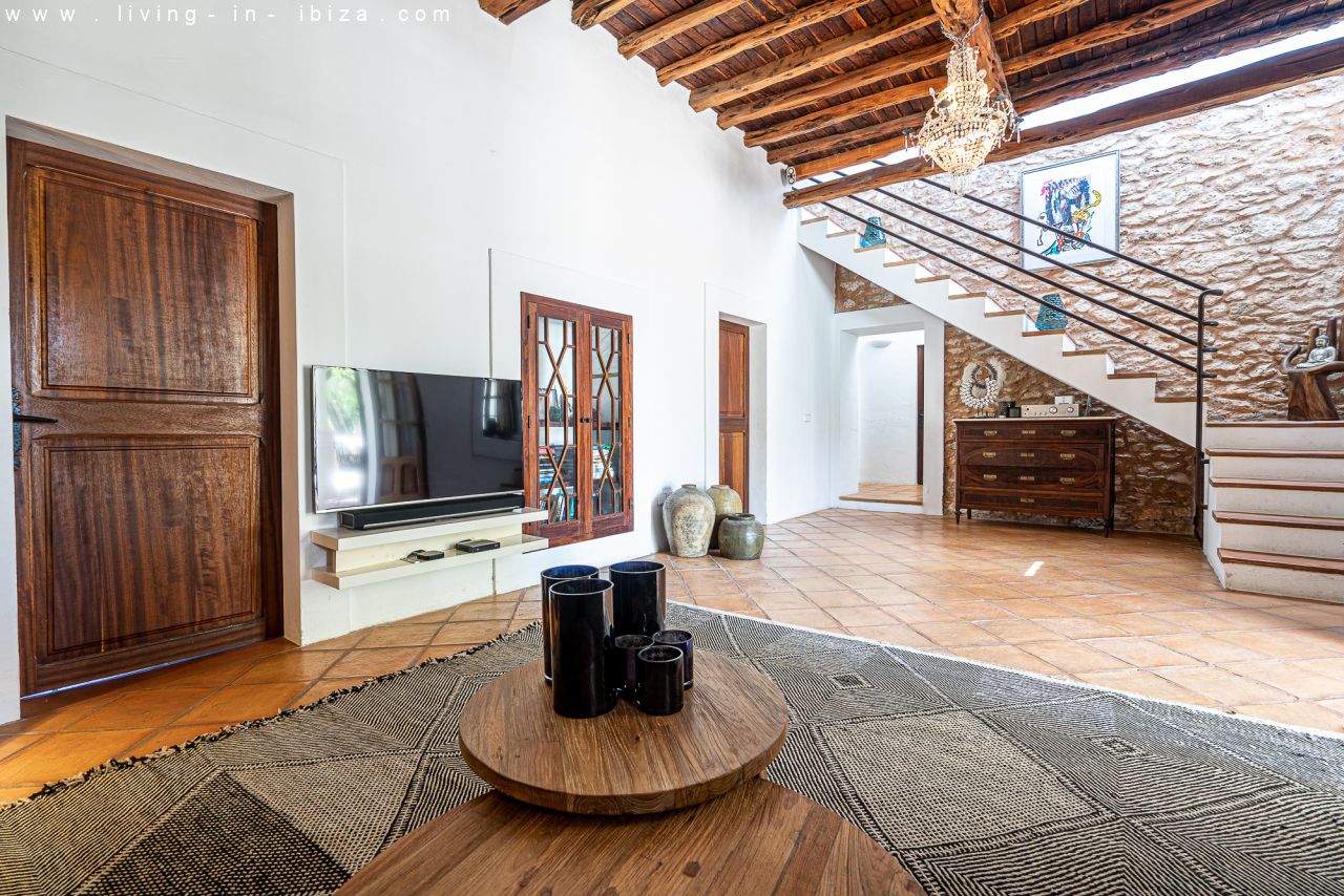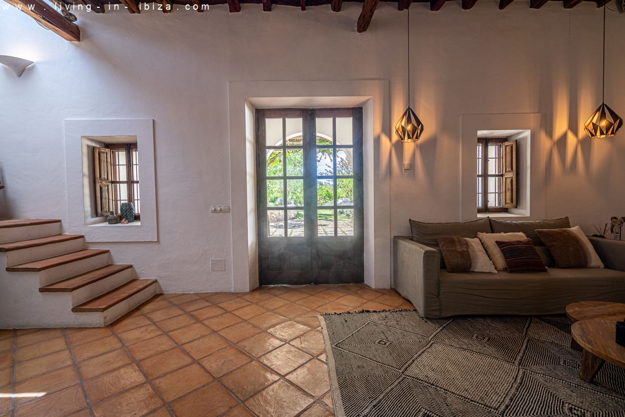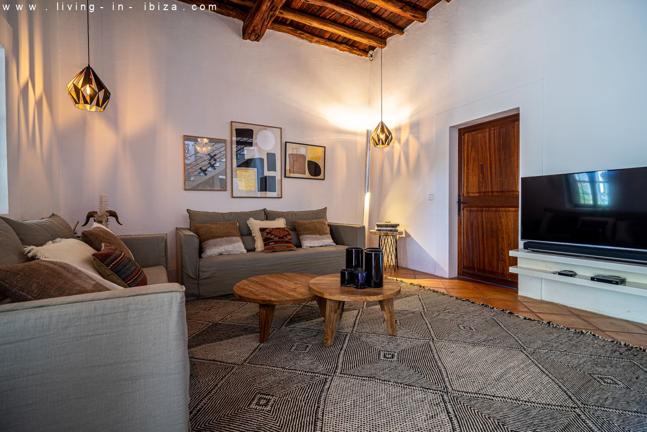 Langzeitmiete / Jahresvertrag, komplett renovierte Ibizenkische Finca, in der Gegend von Buscastell, Ibiza. Blick auf die Bucht von San Antonio mit ihren unschlagbaren Sonnenuntergängen.