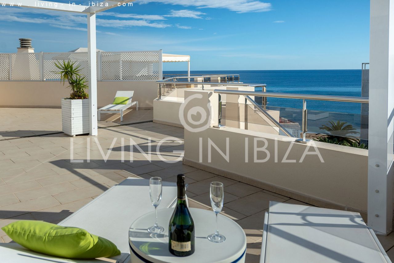 Zu verkaufen: Fantastische Penhauswohnung mit Meerblick, Dachterrasse, Garage, Gemeinschaftspool, Strandnah, in Santa Eulalia del Rio, Ibiza zum Kauf