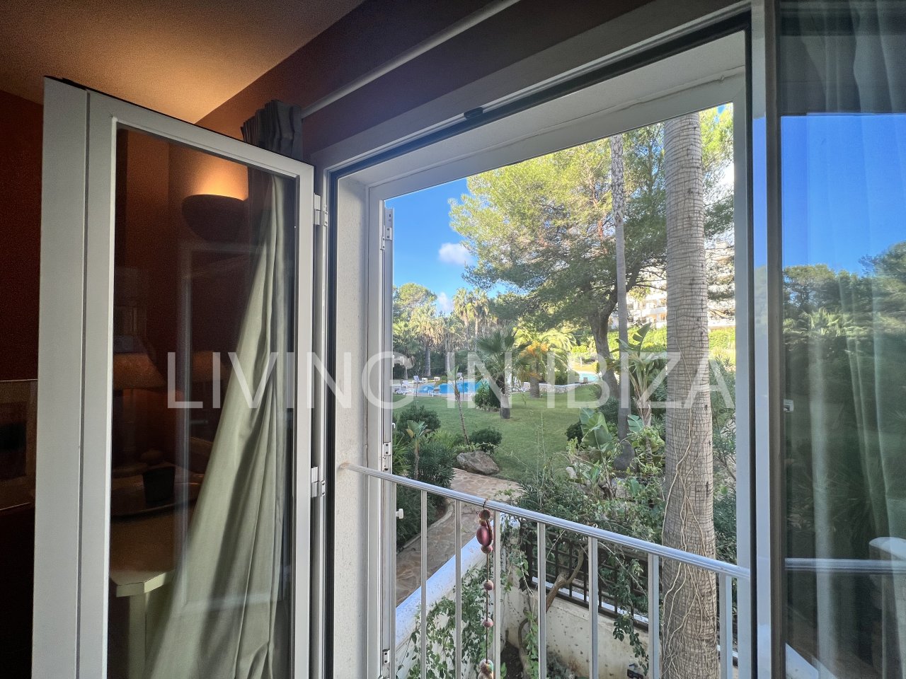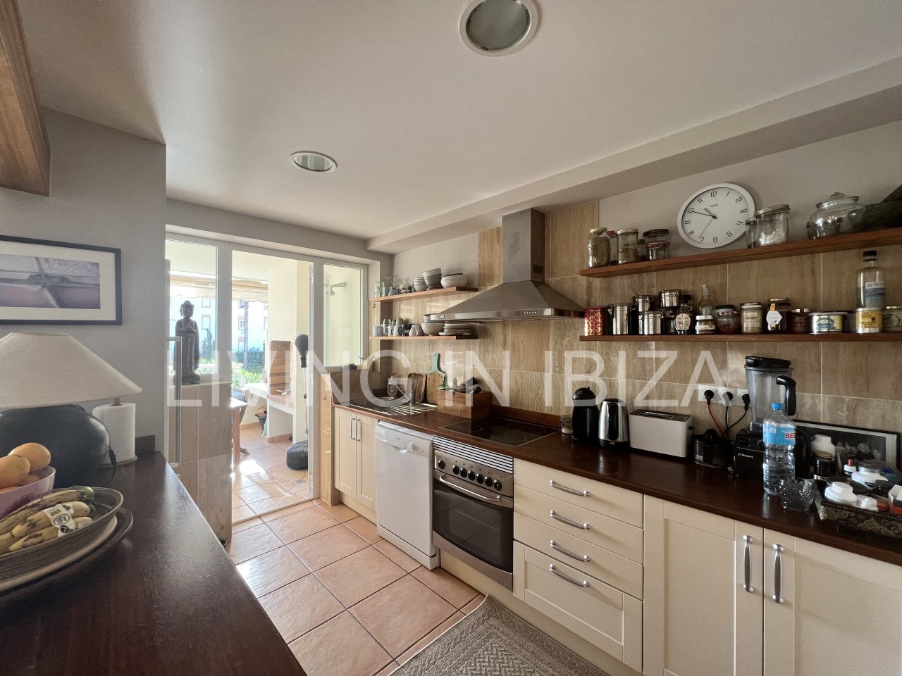 wunderschönes Luxusapartment zur Ganzjahresvermietung, ca. 3 km von San Carlos entfernt, auf der Insel Ibiza. 4 Schlafzimmer, Kamin und Meerblick.