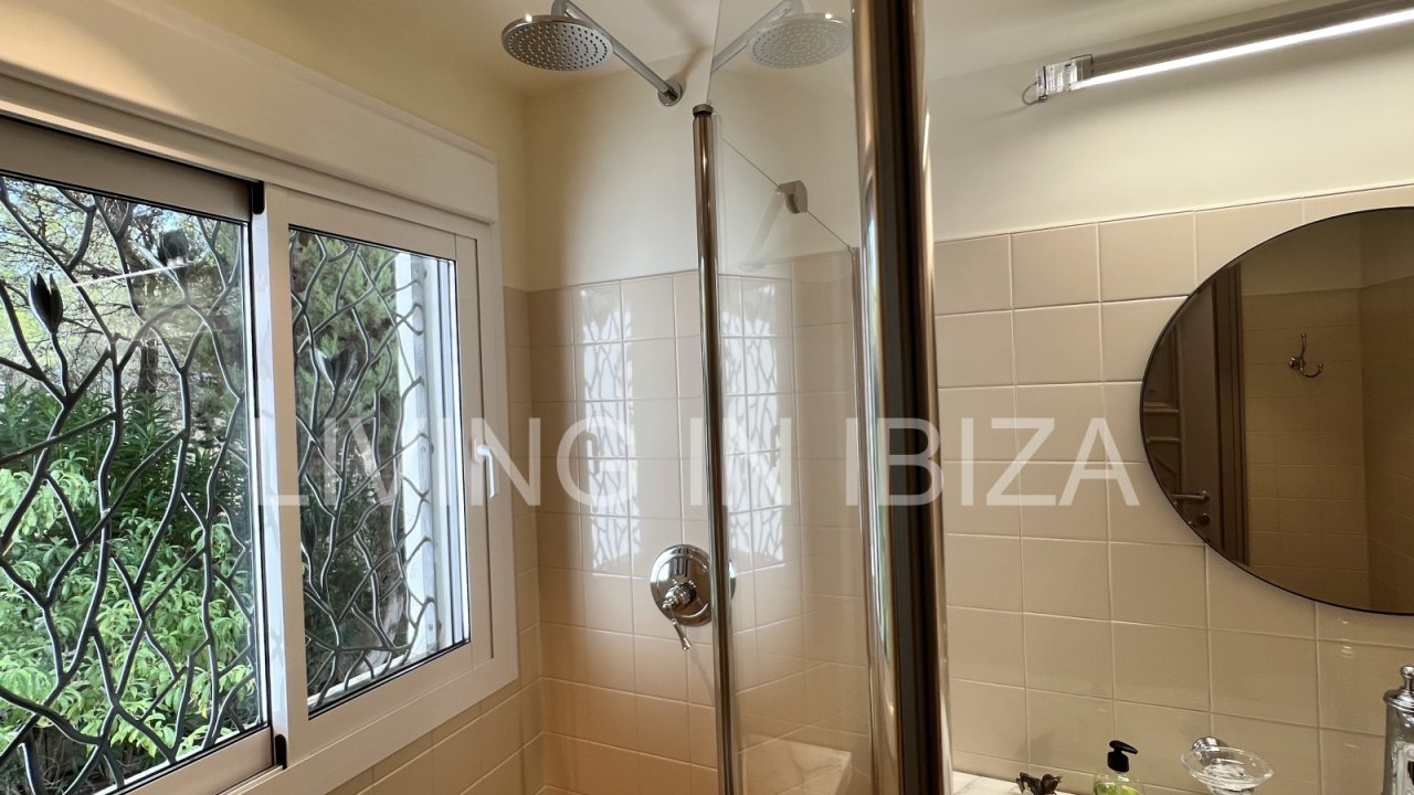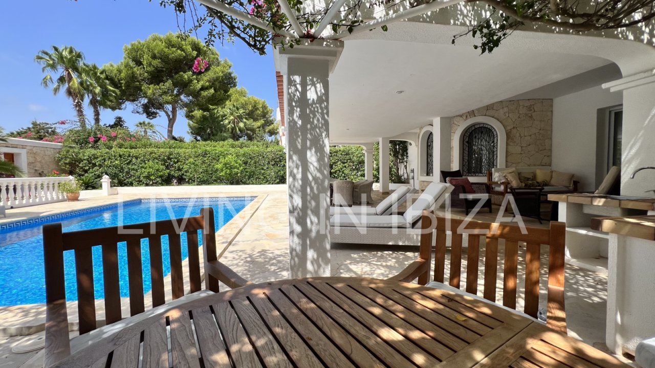 Villa Ibiza Sun, für kurzfristige Vermietung. Dieses attraktive und komfortable Haus befindet sich in Cala Llenya, nur wenige Gehminuten von den Stränden von Cala Llenya und Cala Nova entfernt. Es verfügt über einen fantastischen Swimmingpool, einen üppigen grünen Garten, eine große überdachte Terrasse mit Grill und Außendusche. Es ist nach Südosten ausgerichtet und hat den ganzen Tag über viel natürliches Licht und Sonne.