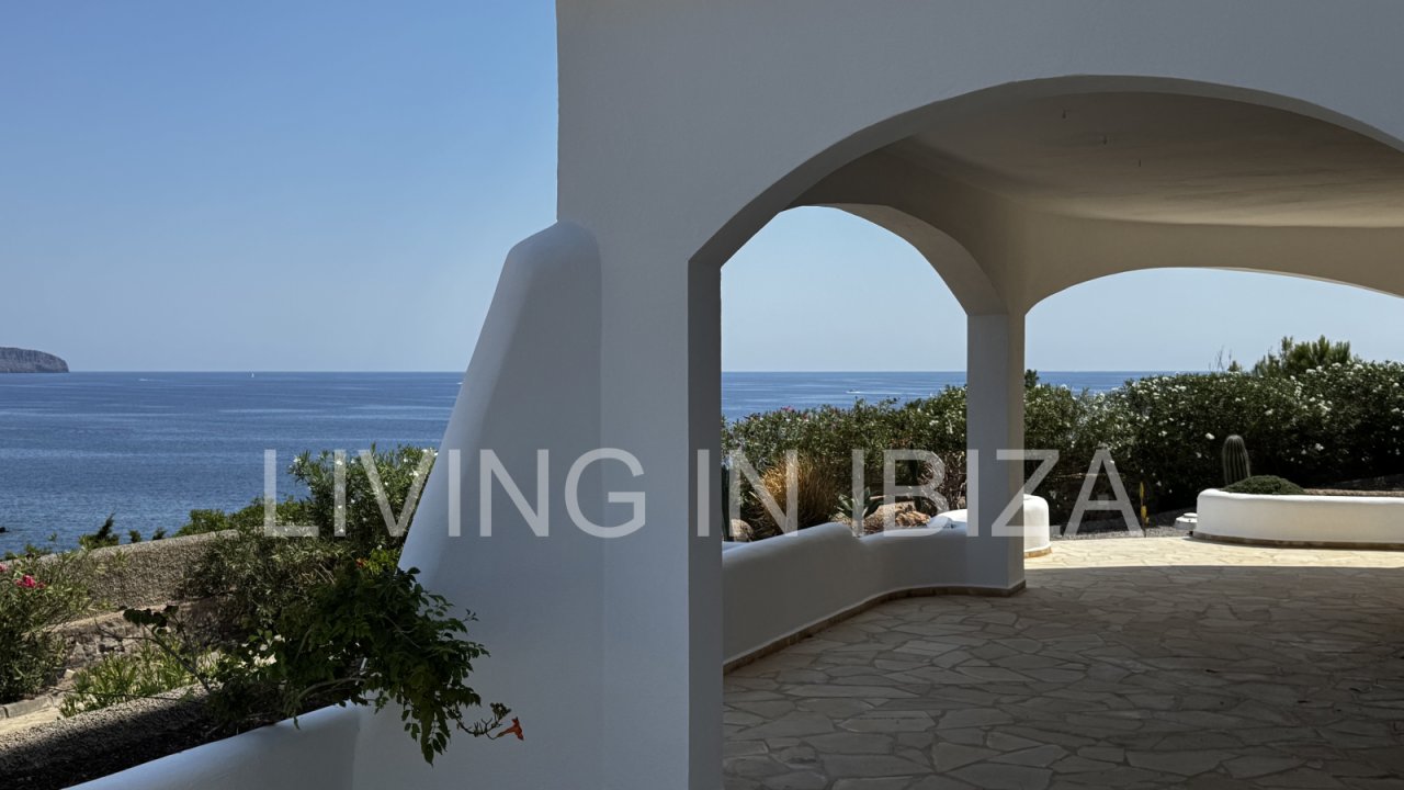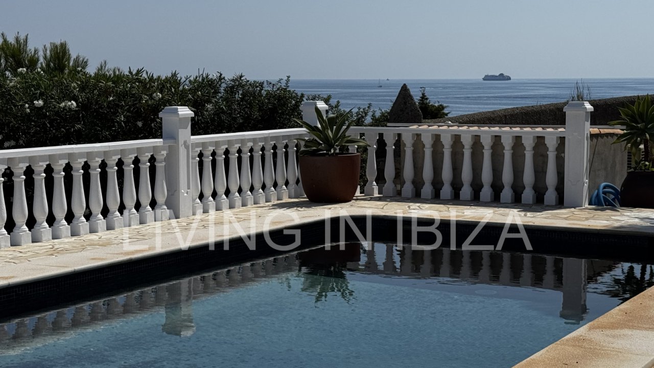 Das Haus zur Miete in Es Canar auf Ibiza bietet einen atemberaubenden Blick auf das Mittelmeer.
