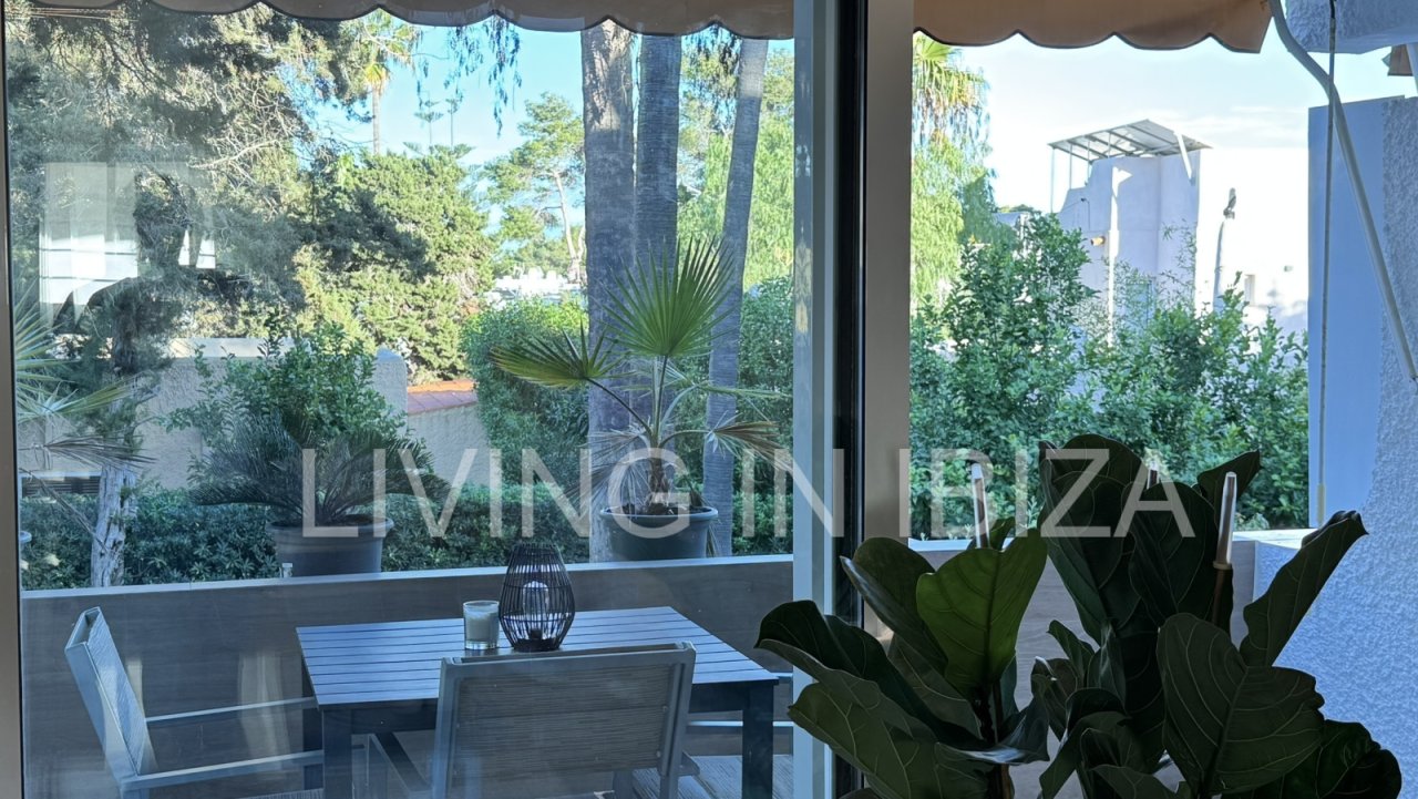 Modernes und helles Reihenhaus in einer exklusiven und ruhigen Wohnanlage in Siesta (Santa Eulalia del Río). Das Haus wurde komplett renoviert und ist bezugsfertig. Es besticht durch seinen zeitgenössischen Stil, seine fantastische Sonnenterrasse, seine zwei Balkone und den Zugang zu einem gepflegten Gemeinschaftsgarten. Es wird komplett möbliert und mit neuen, hochwertigen Elektrogeräten verkauft.