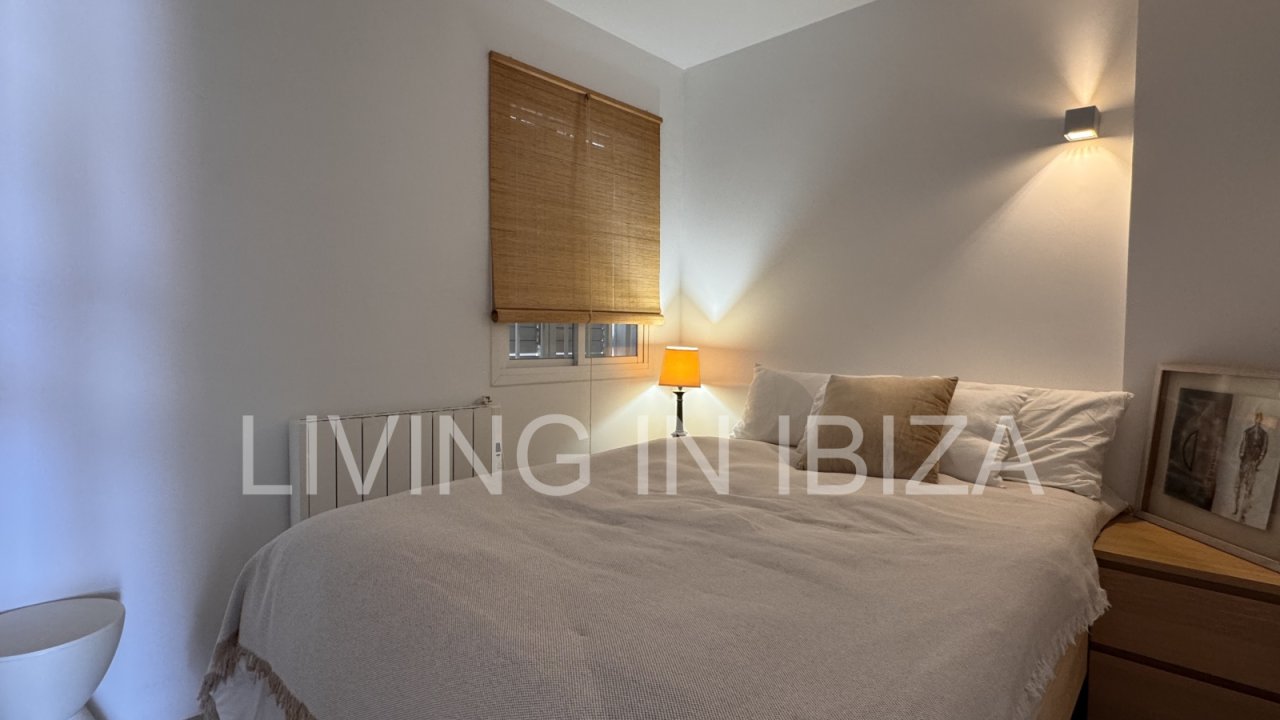 ANNUAL RENTAL. Attractive designer apartment on the seafront and beach on the promenade of Santa Eulalia del Rio, sea view and garage in Ibiza.