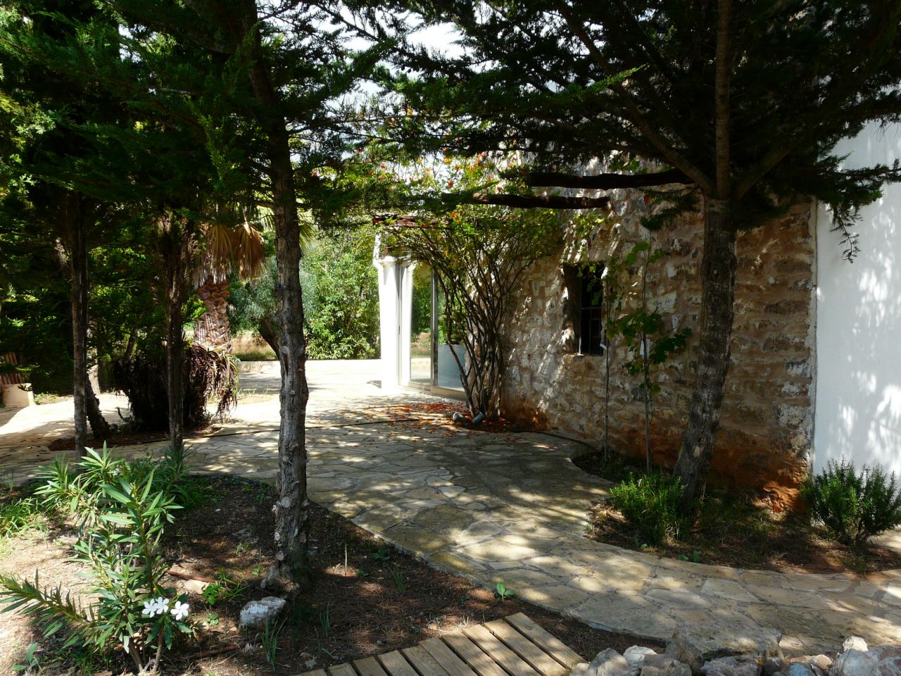 The land is fully fenced, through which you enter through an automatic gate with remote control and video intercom. Garden with native plants, mature trees, olive trees, carob trees, junipers, among others.