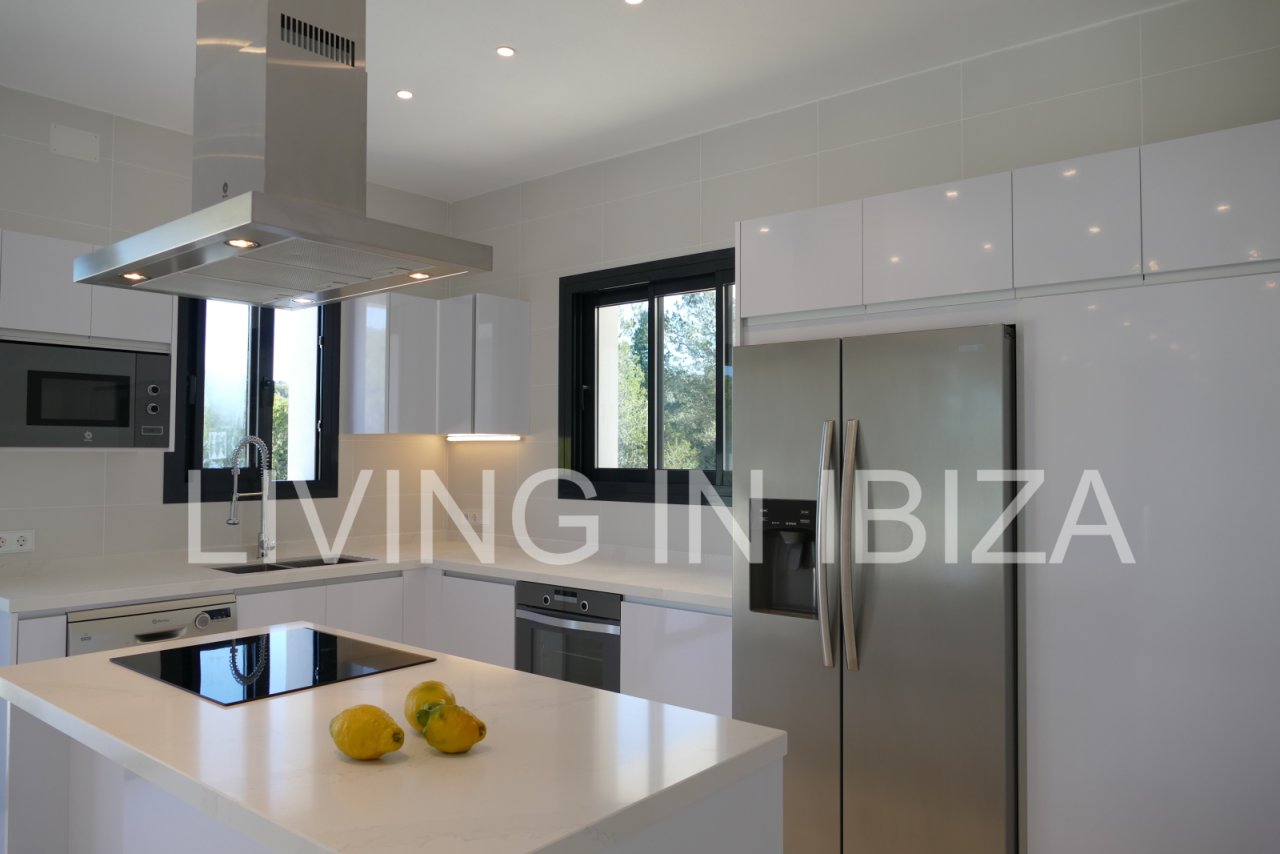 Yearly/rental without furniture. Modern villa with swimming pool, located in the area of San Juan de Labritja, in the north of the island of Ibiza, on the side of a hill. It is a very comfortable and practical house, with bright rooms and large windows with wonderful open views of the countryside.