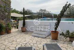 Rent TEMPORARY contract / 6 to 8 months for non-residents on the island. House of more than 100 years completely renovated, typical Ibizan construction with stone walls, beams of juniper, in the area of Santa Eulalia, near the Atzaró Agrotourism. Very large freshwater pool, because of its depth of almost two meters, little chlorine is used for its maintenance. Well water, hot / cold air conditioning throughout the house and ceiling fans in the rooms of the house. Chimney. In the summer the house is usually quite cool because of its large stone walls. TV and satellite in all rooms, internet. The garden is completely fenced, an ideal place to enjoy in the company of pets.