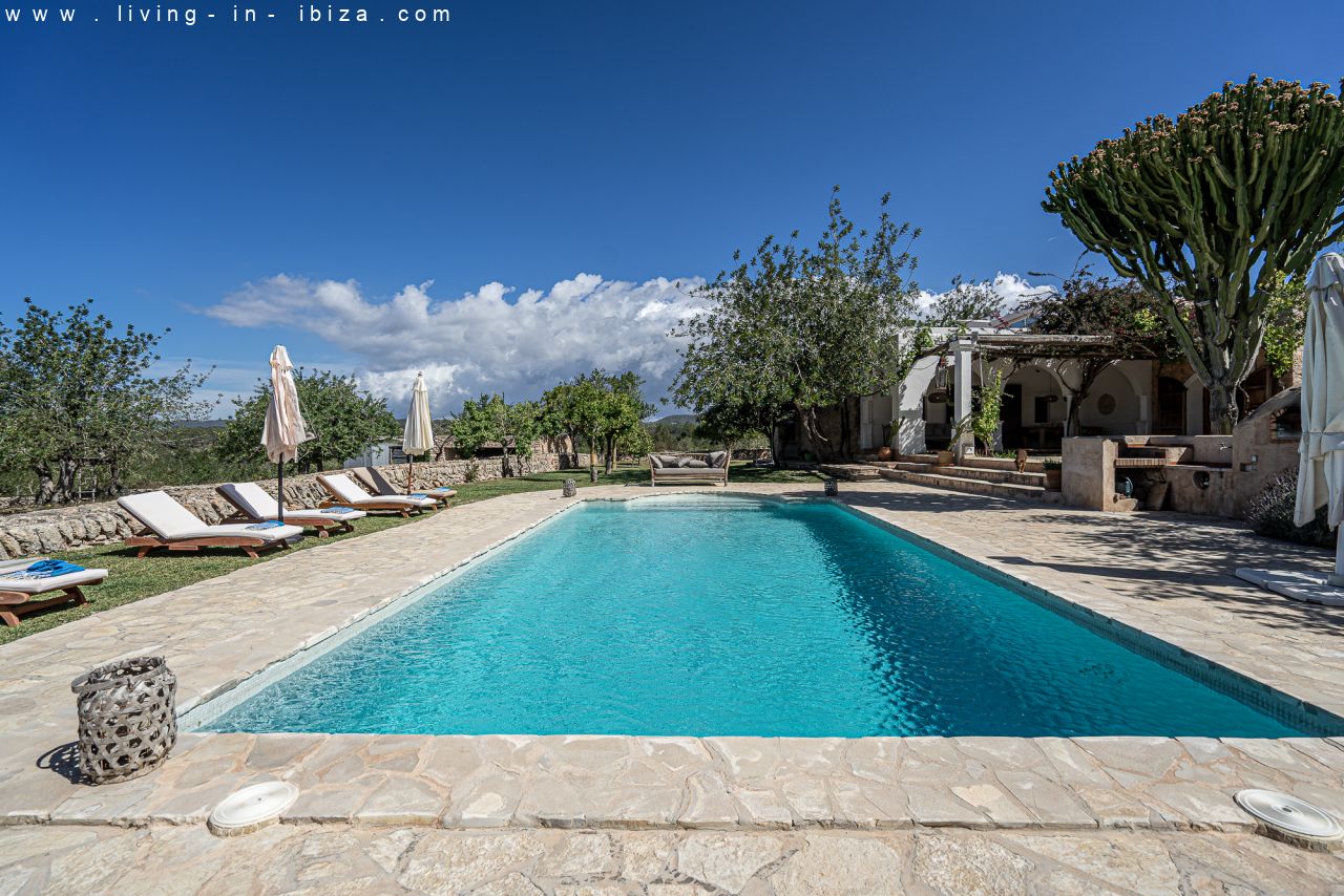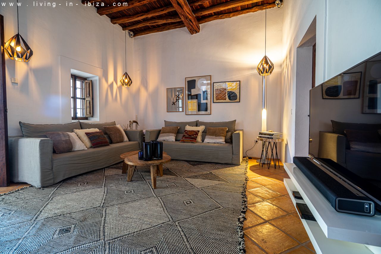 Long term rental / Annual contract, completely renovated dream country estate, in the Buscastell area, Ibiza. Views towards the Bay of San Antonio with its unbeatable sunsets.