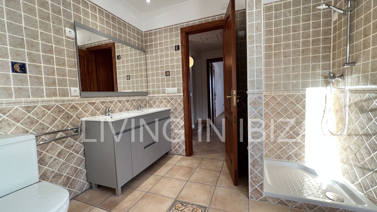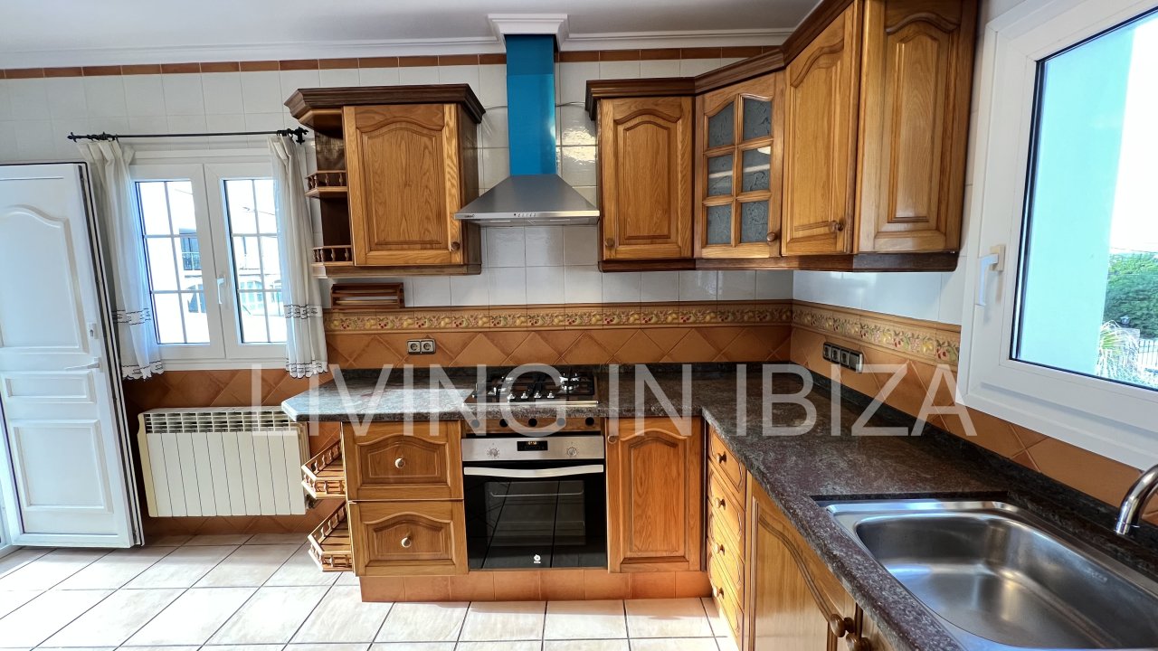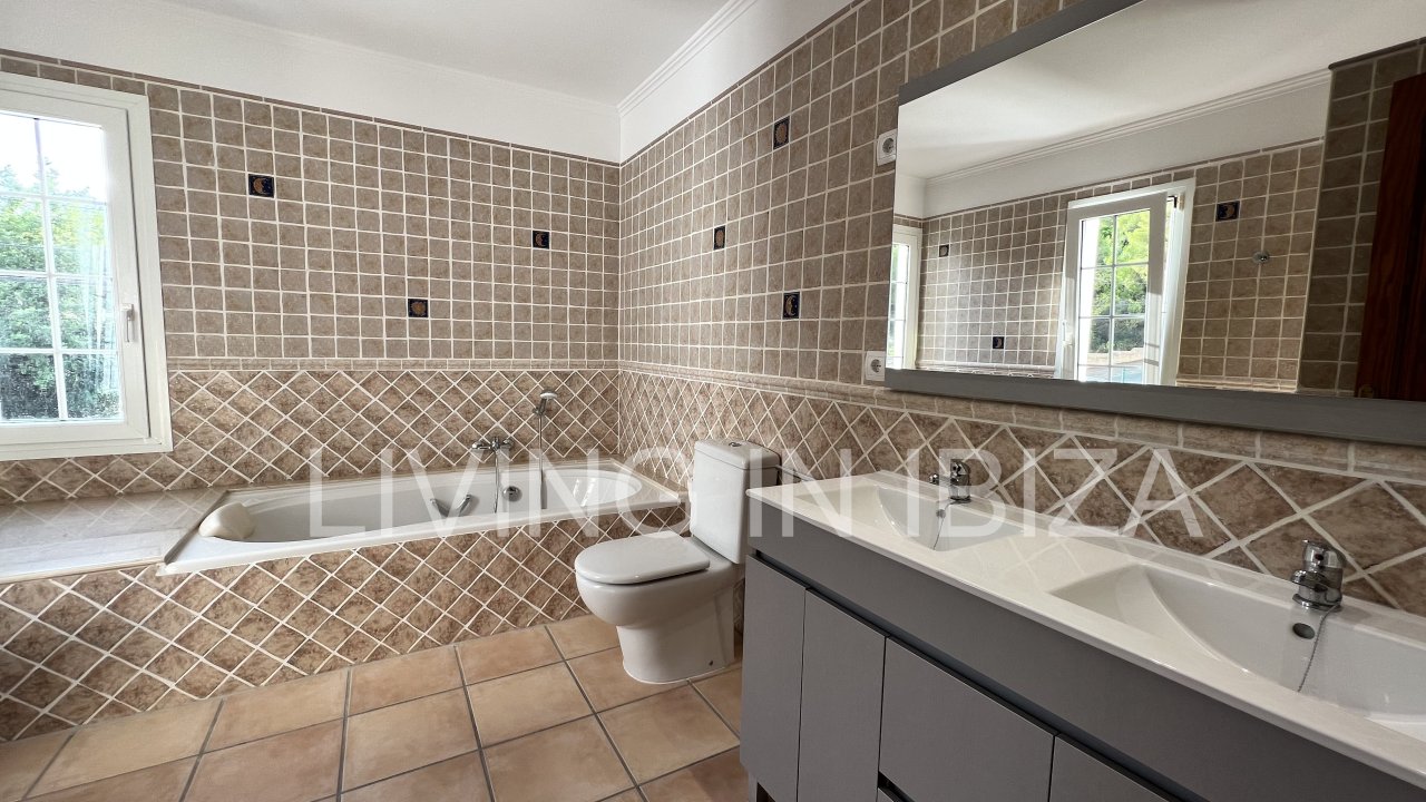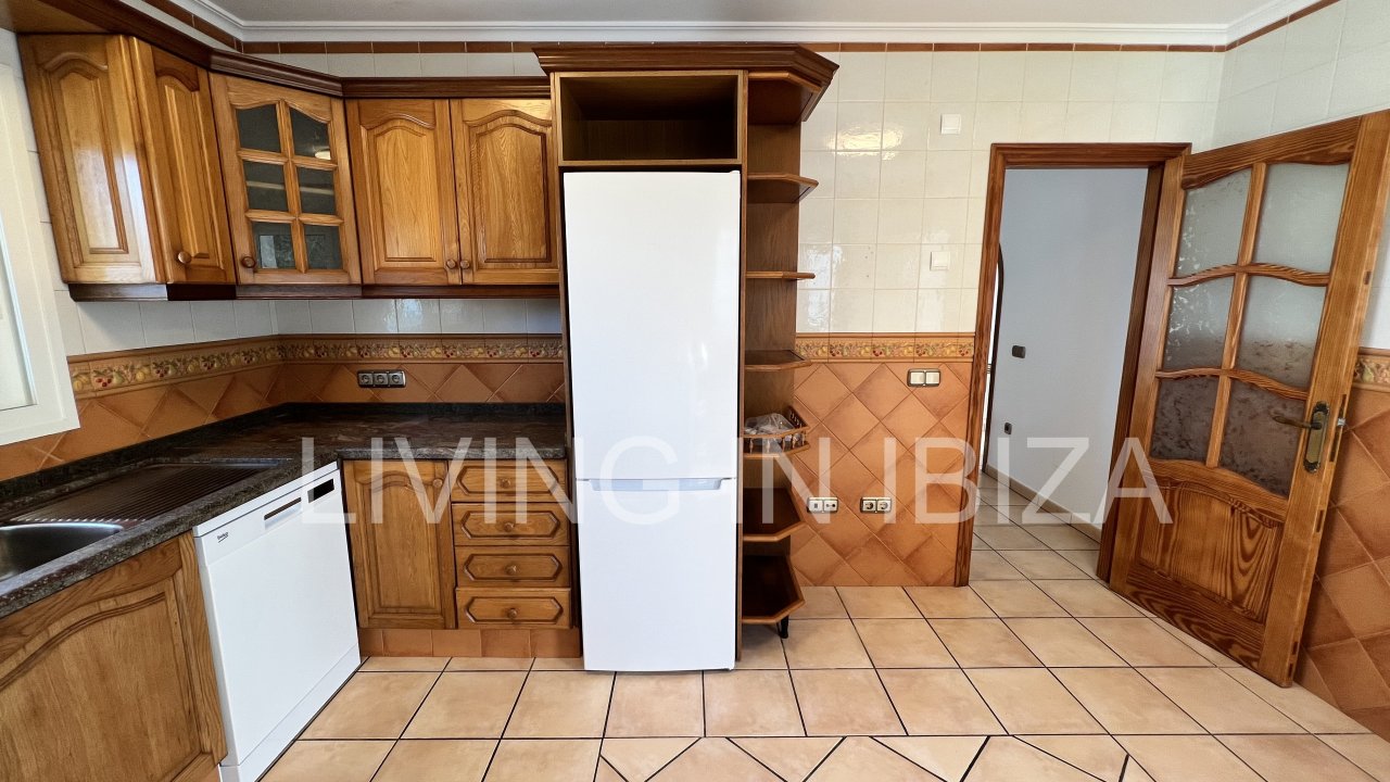 Long term rental / annual contract. Charming two-storey house in Siesta, Santa Eulalia, Ibiza. Stunning sea views from the terrace. Parking places for several cars, about 300 m from the supermarket and about 500 m from the beach. Unfurnished so you can decorate it to your taste. Very quiet area despite having neighbours nearby. Very bright and with high ceilings. Cosy living room with fireplace. Several outside terraces, space for barbecue and swimming pool. The property has two entrances, one of them with a large parking area for several cars.