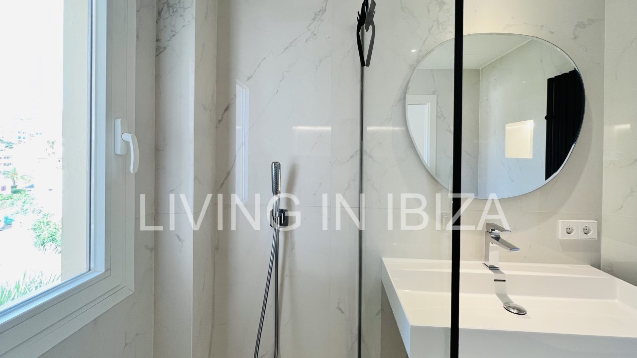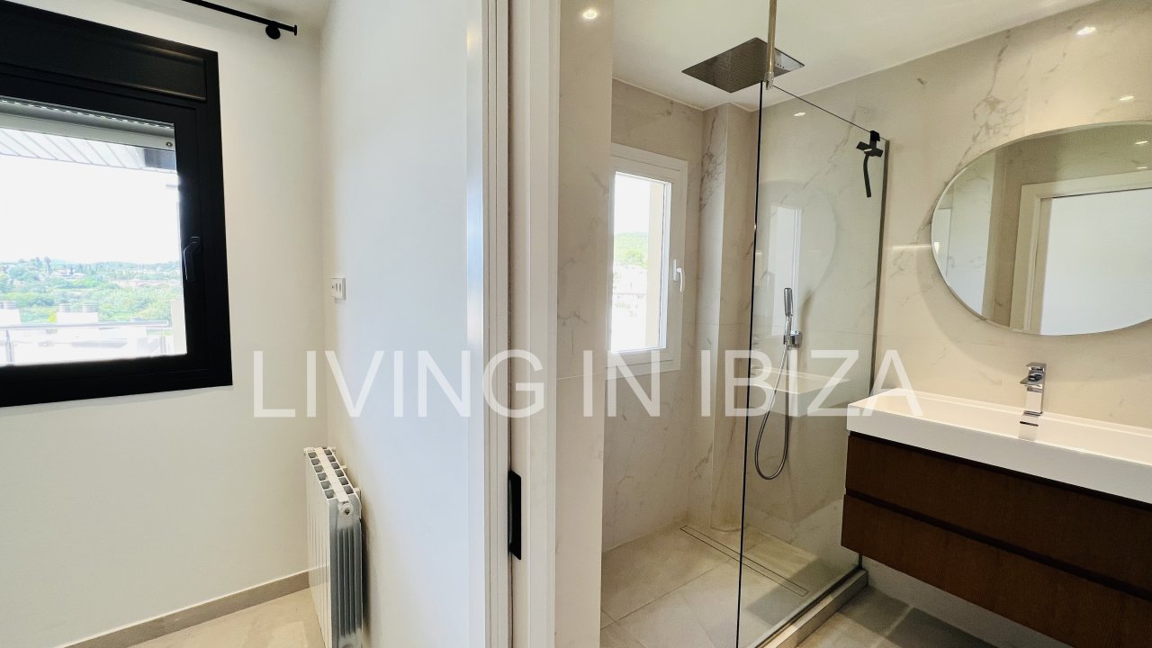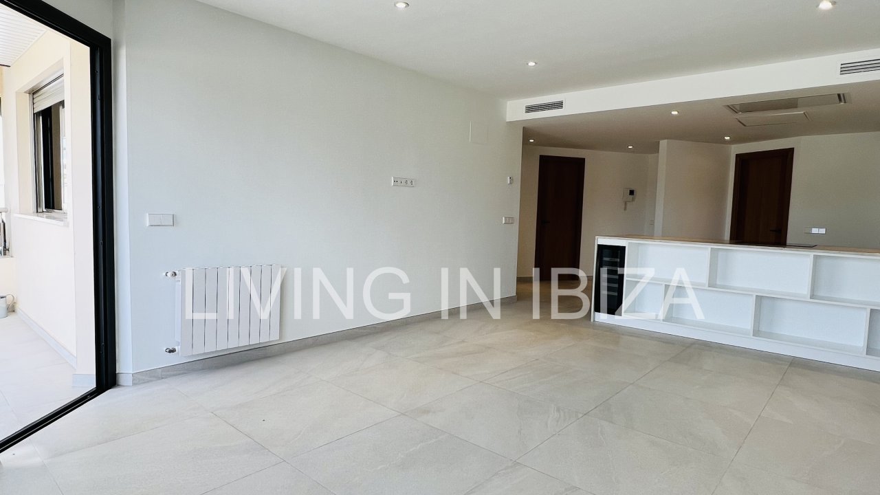 AGUA FRESCA PENTHOUSE: Long term rental / annual contract, modern and recently renovated penthouse with sea views and with a spectacular terrace of 100m2 in Santa Eulalia del Rio, Ibiza, communal pool and gardens with parking space included in the same building, gas central heating, central air conditioning hot/cold and only 60 meters from the beach. Unfurnished so you can decorate it to your taste.