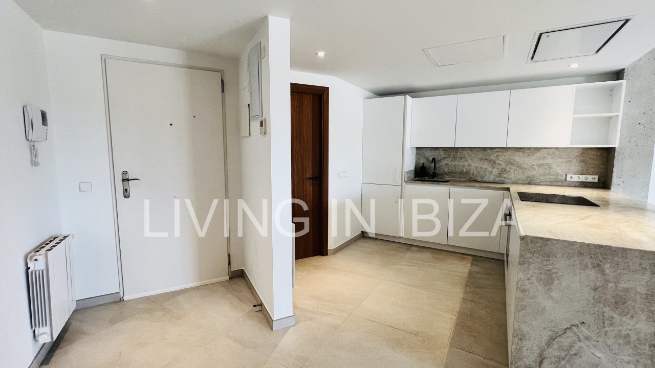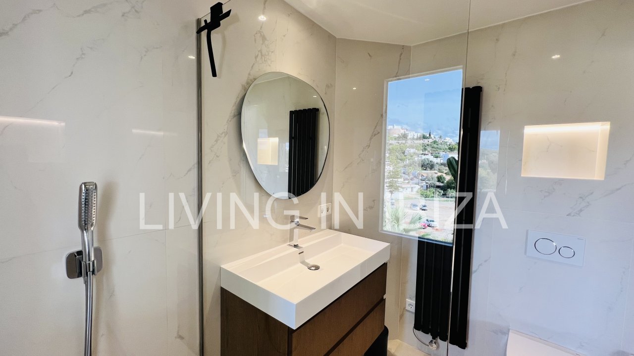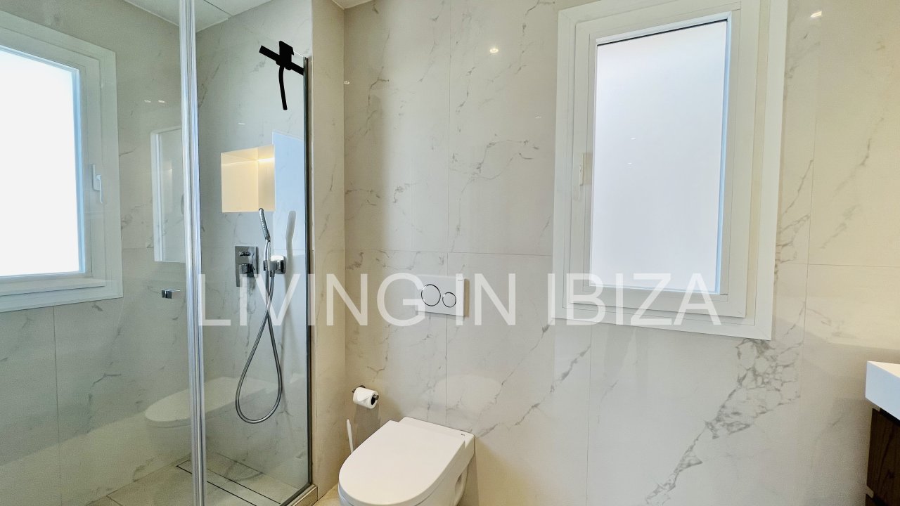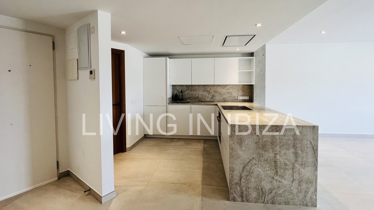 AGUA FRESCA PENTHOUSE: Long term rental / annual contract, modern and recently renovated penthouse with sea views and with a spectacular terrace of 100m2 in Santa Eulalia del Rio, Ibiza, communal pool and gardens with parking space included in the same building, gas central heating, central air conditioning hot/cold and only 60 meters from the beach. Unfurnished so you can decorate it to your taste.