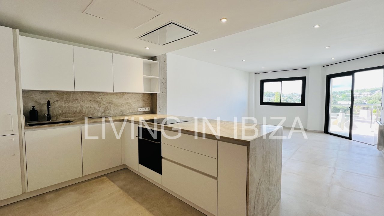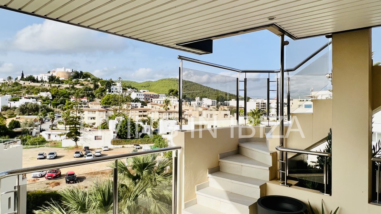 Long term rental/annual contract, modern and recently renovated penthouse with sea views and with a terrace of 100m2 in Santa Eulalia, Ibiza
