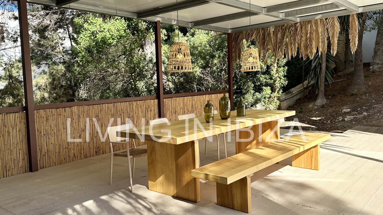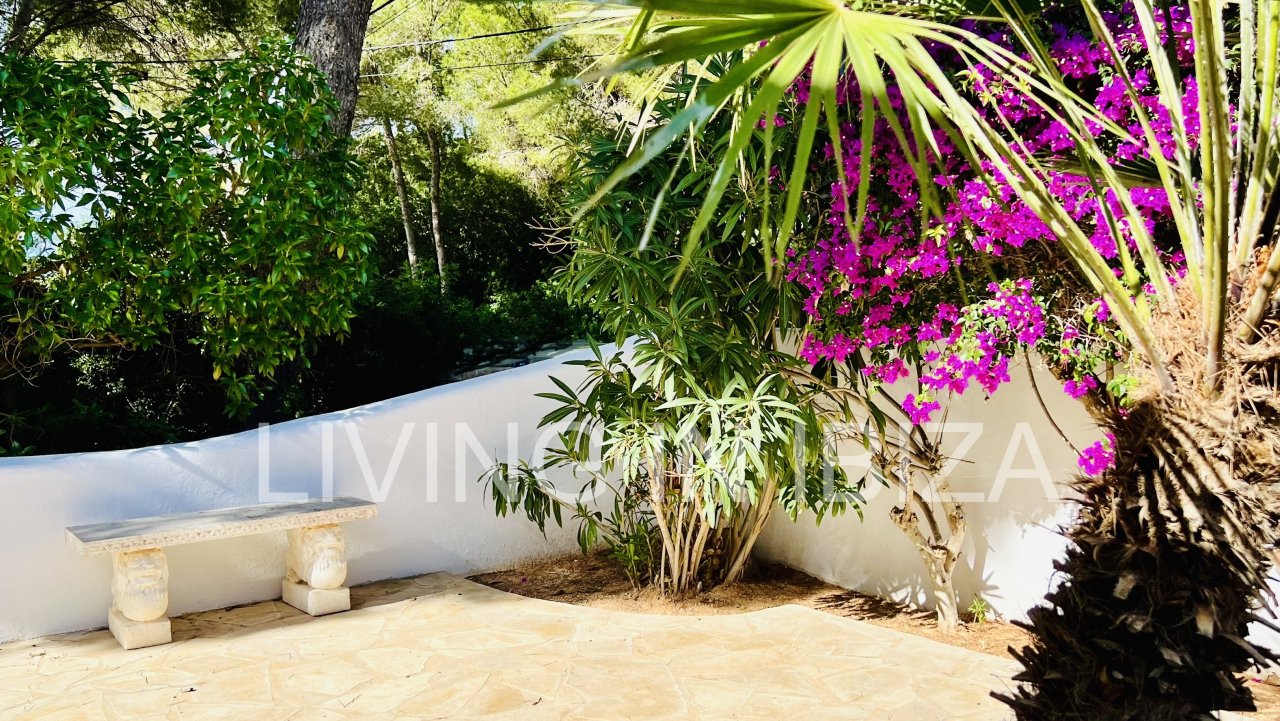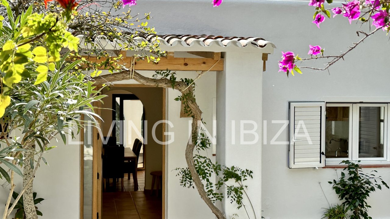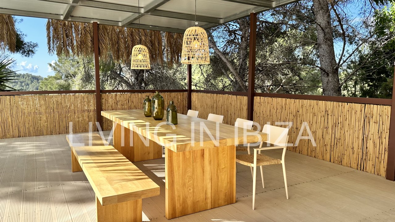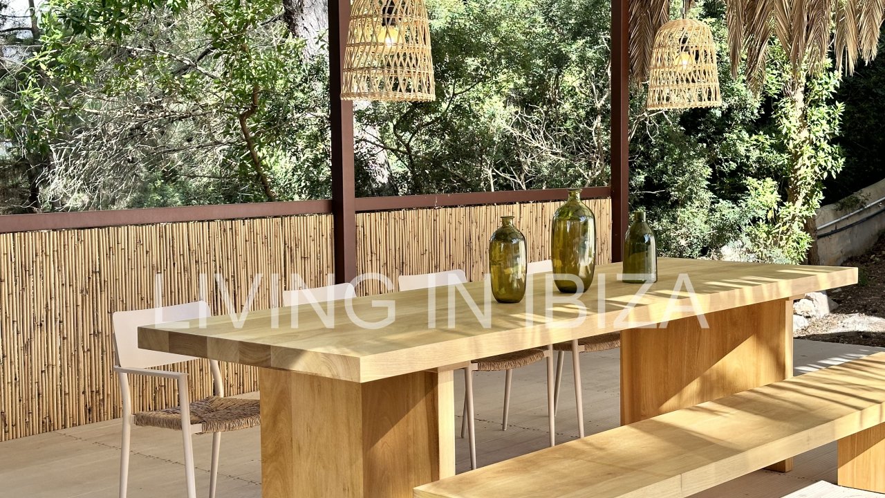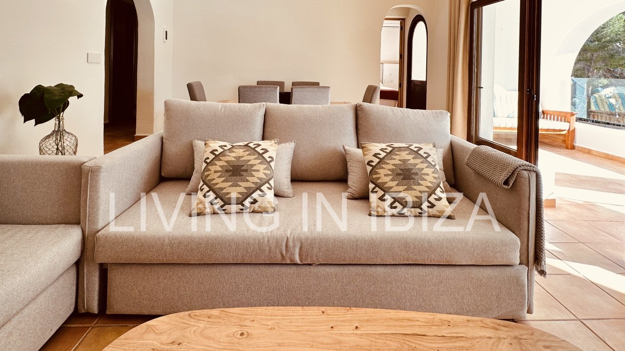 VILLA SAGE. Seasonal rental/temporary contract for the summer and autumn months. Cosy, recently completely renovated, brand new, Mediterranean style house with swimming pool for rent in a quiet residential area in the municipality of Santa Eulalia del Rio, Ibiza. Its furniture and equipment are new and also brand new. Due to its privileged south orientation, this house enjoys an abundance of natural light and offers fresh green views. The plot is fenced.