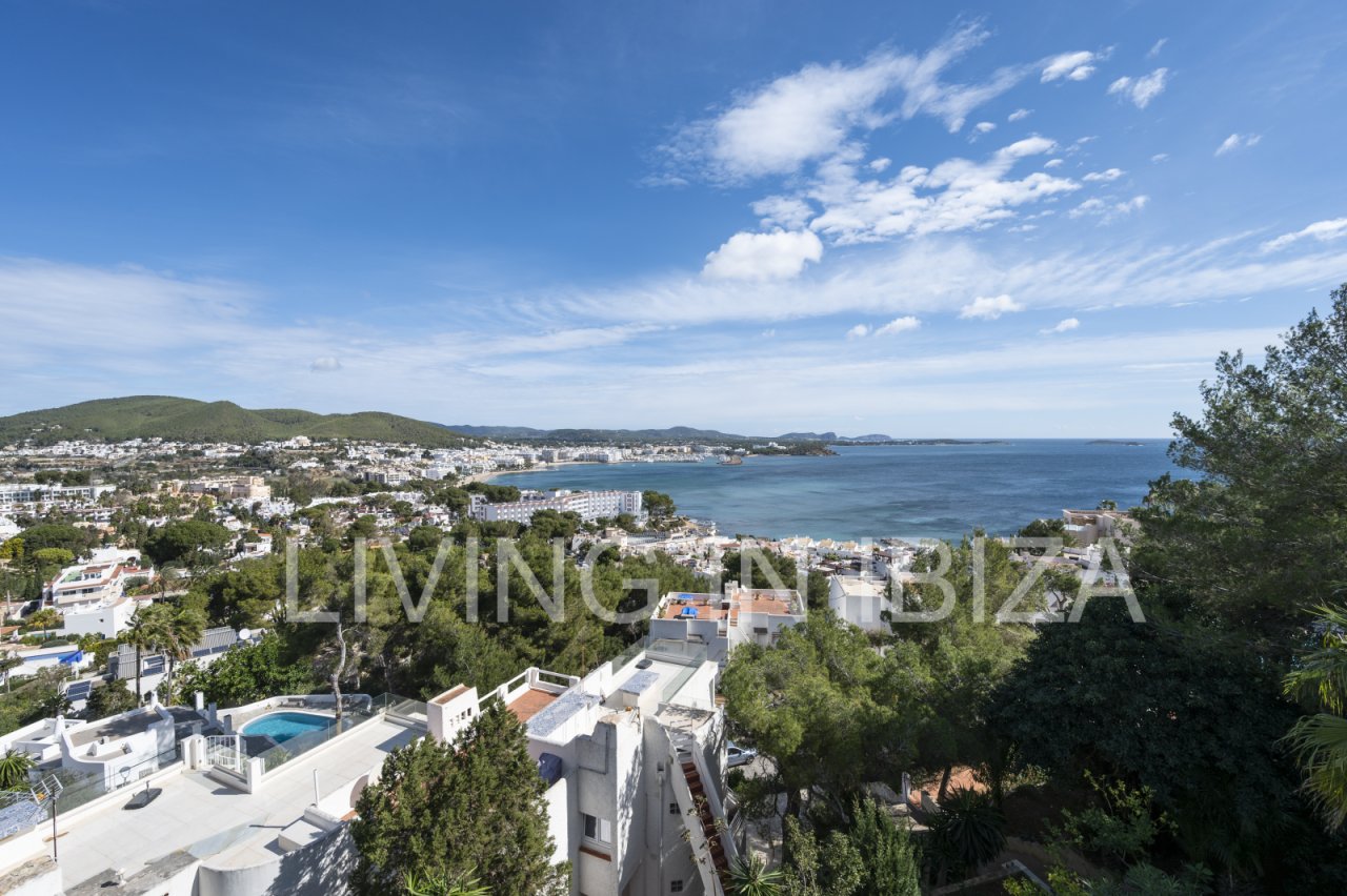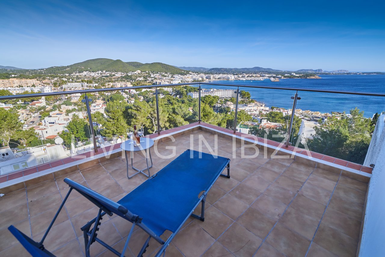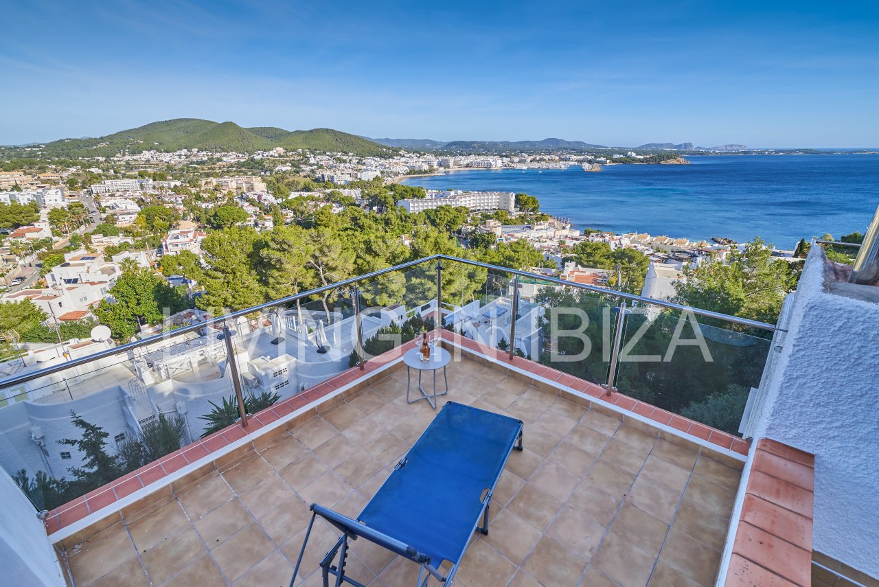 FOR SALE. Fully renovated townhouse in Siesta, Santa Eulalia, Ibiza. Sea views, independent studio, large terrace
