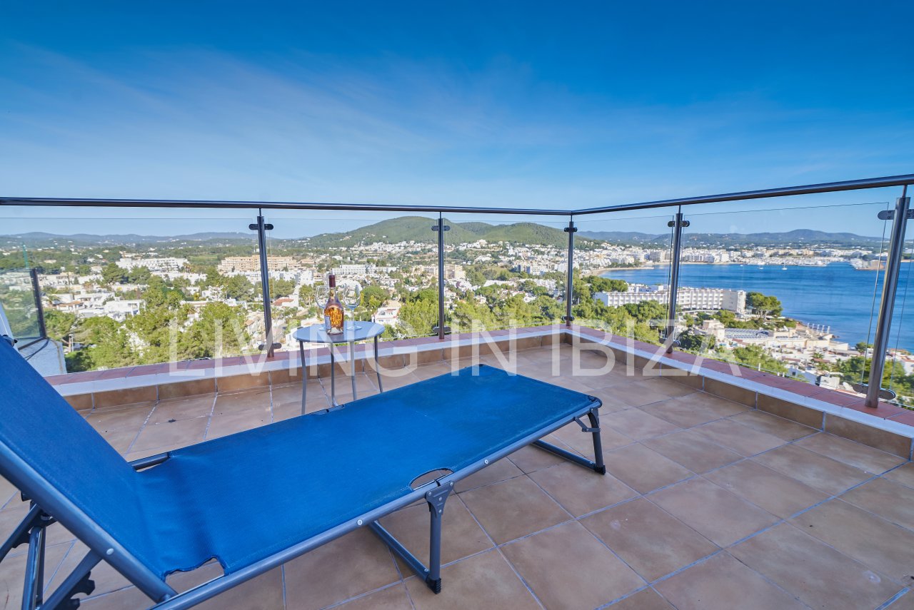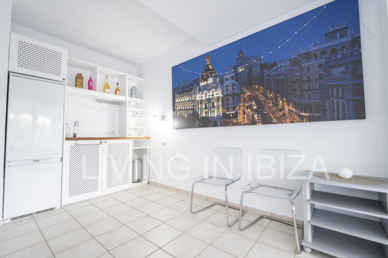 FOR SALE Casa Sol y Mar. Totally renovated townhouse in Siesta, Santa Eulalia del Rio, Ibiza. Sea views, studio with possibility of independent entrance, large terrace with barbecue and exceptional sea views.