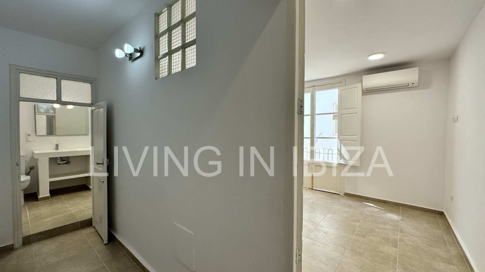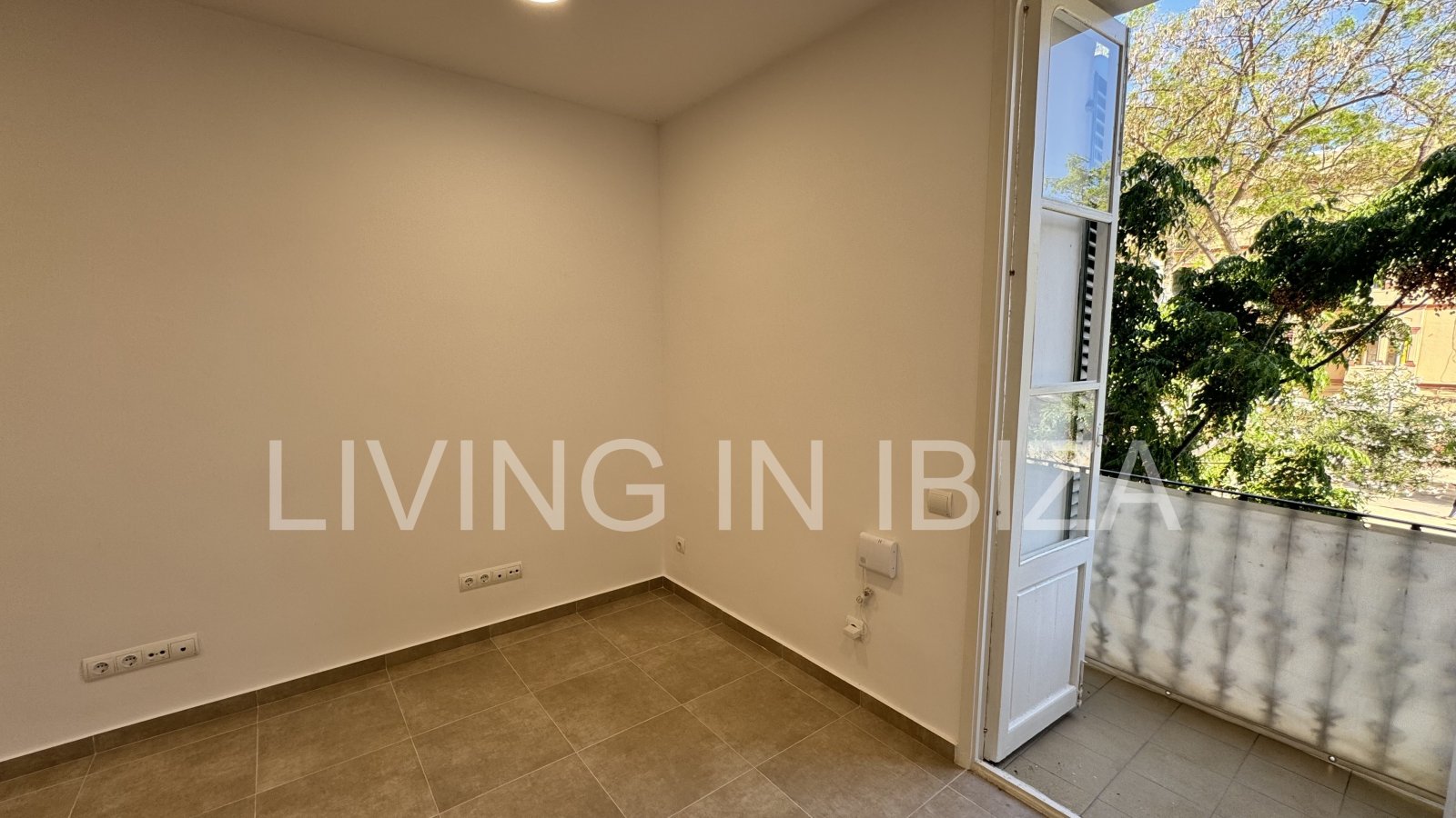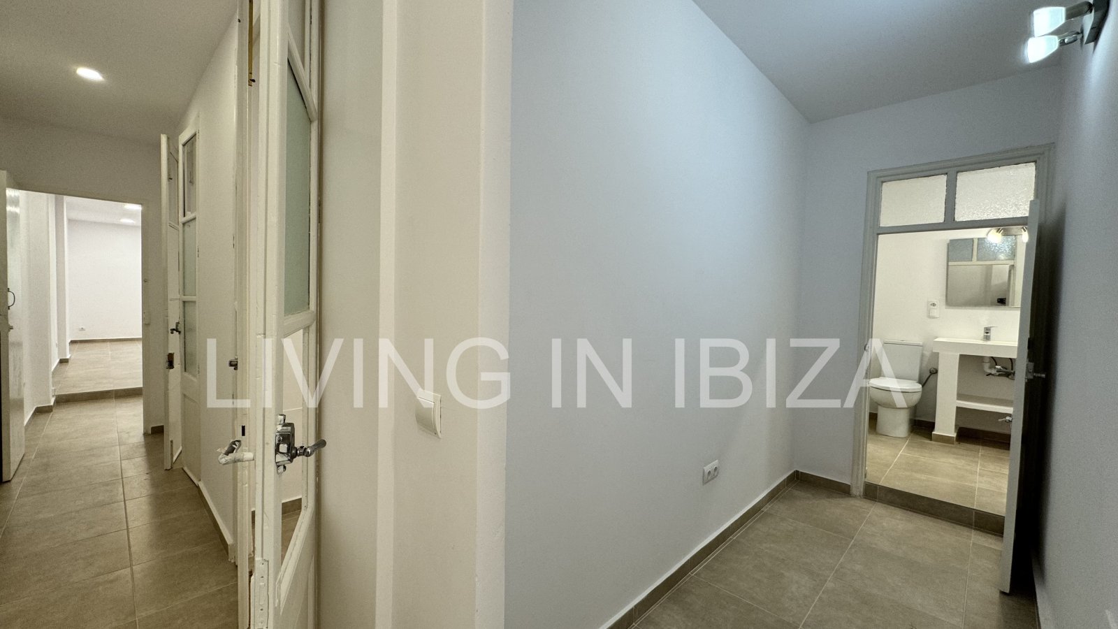 Vitreu: Long-term rental/yearly contract, recently renovated old apartment of approximately 100 m2 with high ceilings on the emblematic Paseo de Vara de Rey in Ibiza. The apartment is south facing and has unobstructed views of the Paseo Vara de Rey, Dalt Vila and the cathedral of Eivissa. Only a few metres from the port, the marina of Ibiza and Dalt Vila. Unfurnished, so can be furnished as desired. Air conditioning hot/cold. The Paseo de Vara de Rey is now a pedestrian area, so there is no traffic noise.
