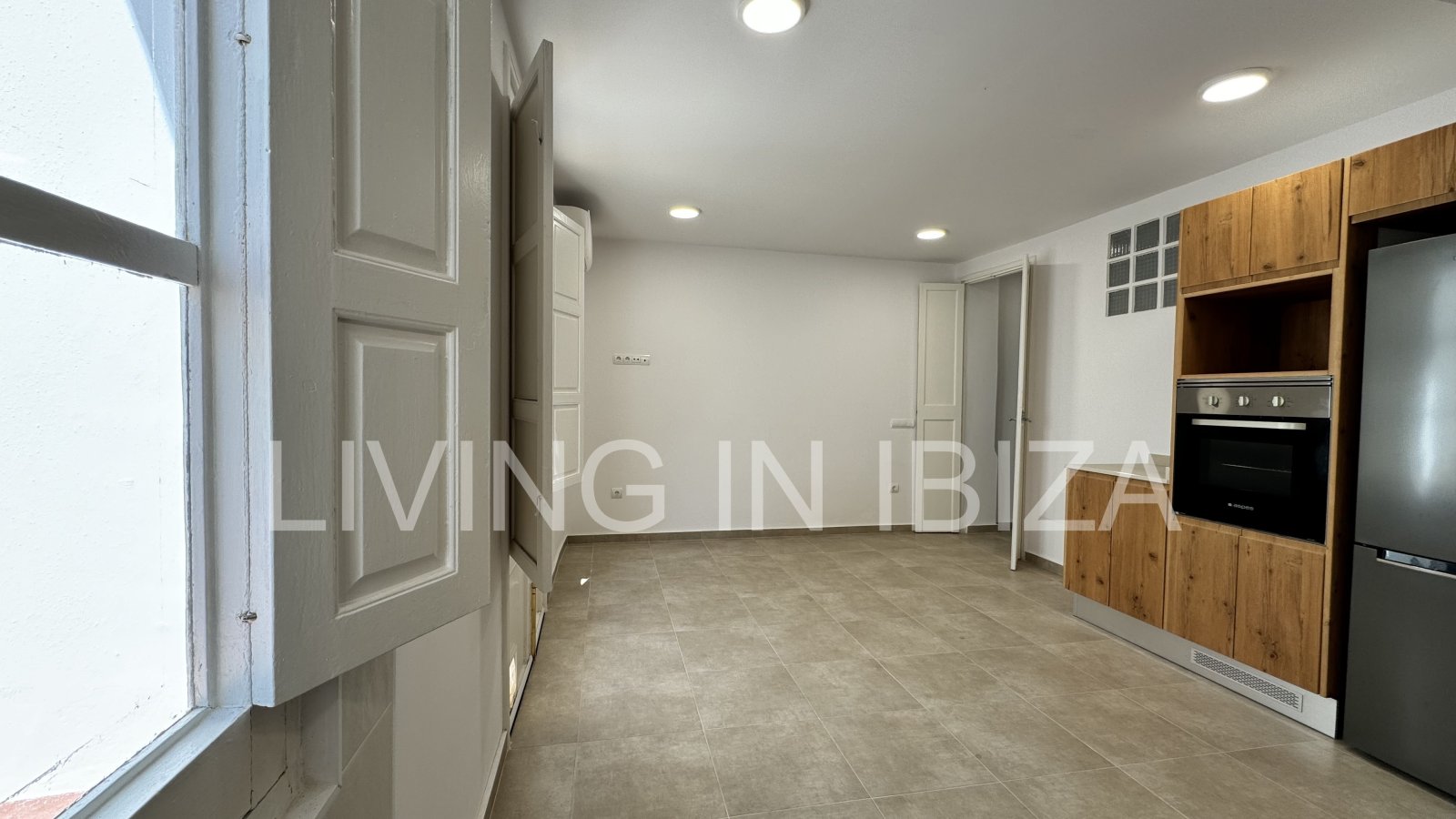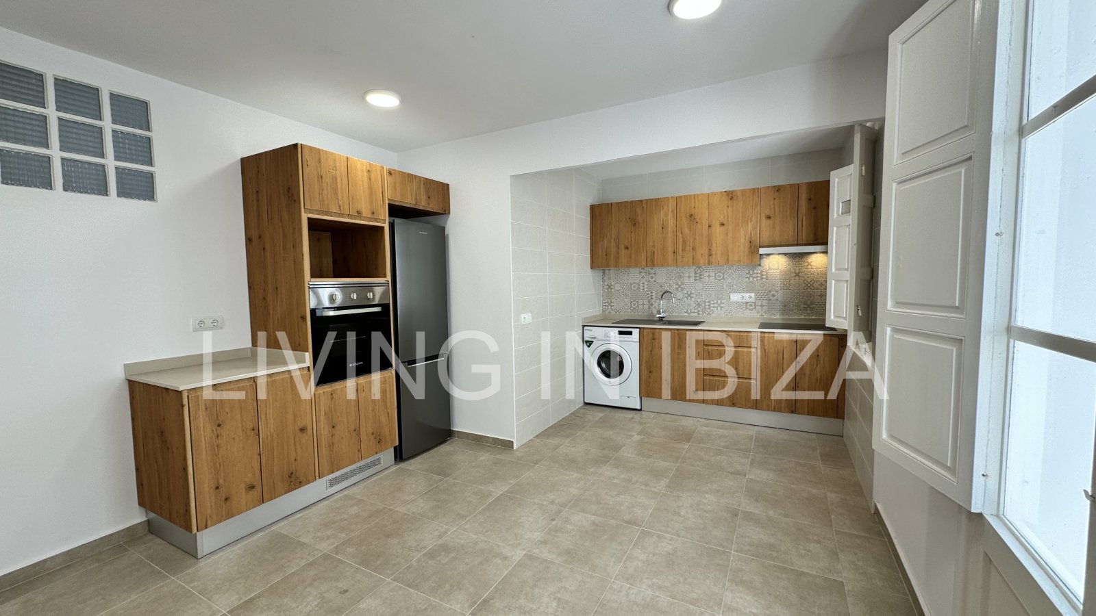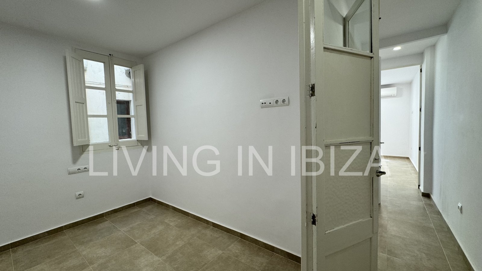 Vitreu: Long-term rental/yearly contract, recently renovated old apartment of approximately 100 m2 with high ceilings on the emblematic Paseo de Vara de Rey in Ibiza. The apartment is south facing and has unobstructed views of the Paseo Vara de Rey, Dalt Vila and the cathedral of Eivissa. Only a few metres from the port, the marina of Ibiza and Dalt Vila. Unfurnished, so can be furnished as desired. Air conditioning hot/cold. The Paseo de Vara de Rey is now a pedestrian area, so there is no traffic noise.