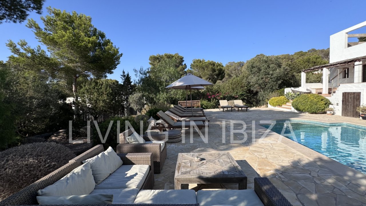 Completely renovated finca in the area of Cala Conta, on the island of Ibiza. Tastefully decorated and renovated, on one floor, furnished, south facing. Access to the villa through an automatic gate. Swimming pool. Barbecue and cosy terraces. Alarm system, fibre-optic internet.