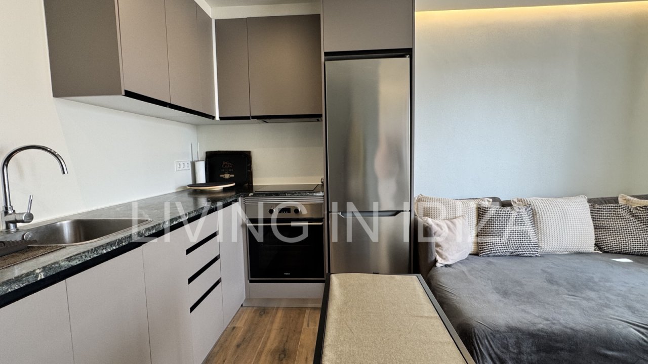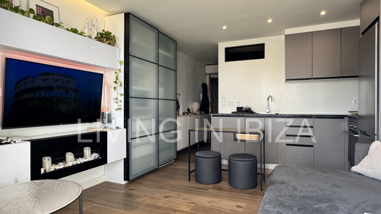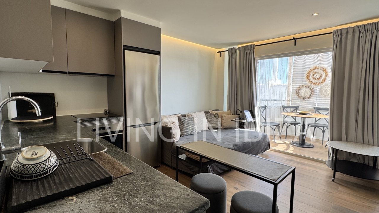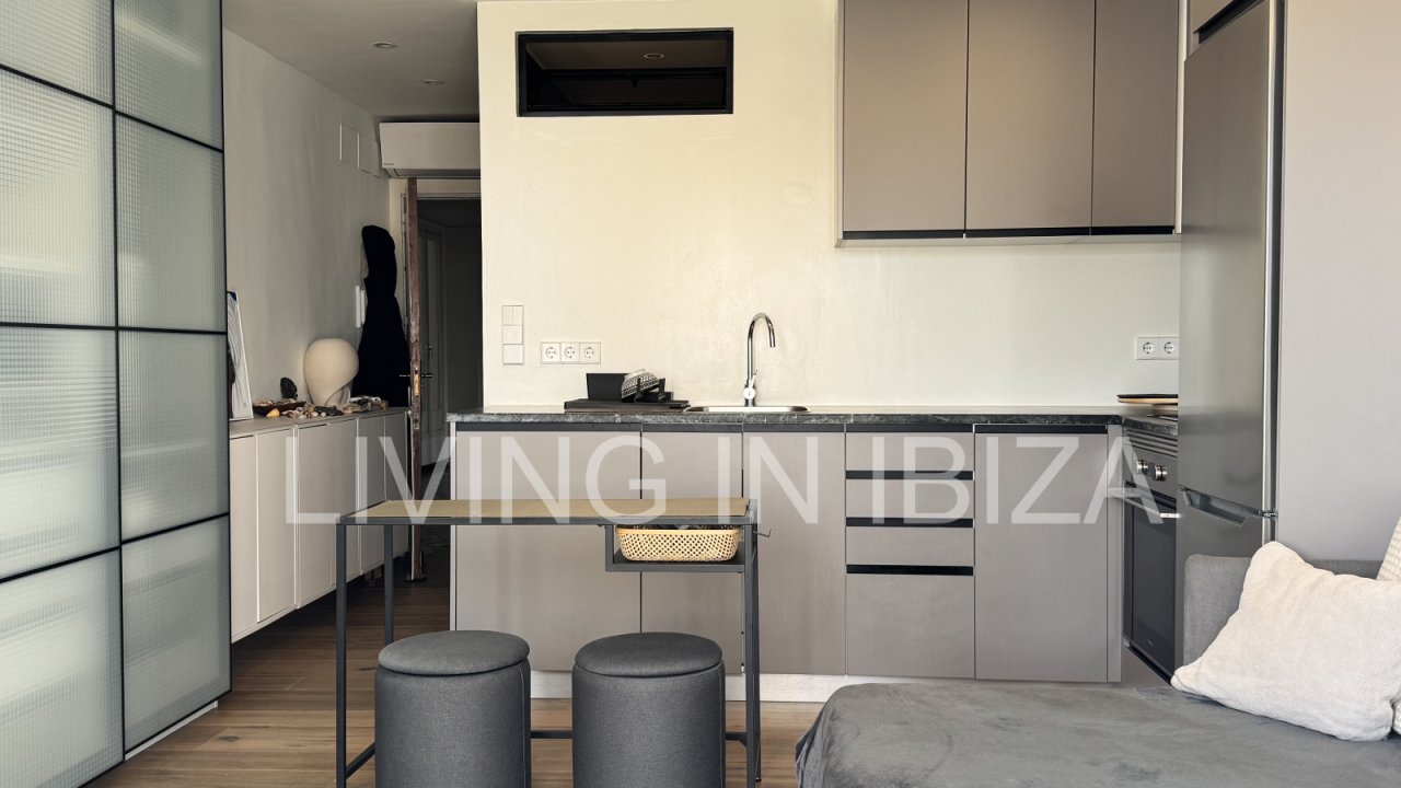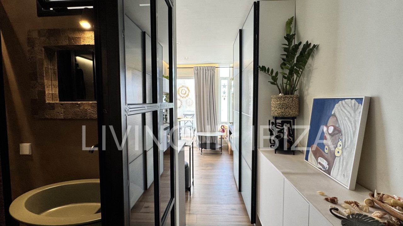Temporary seasonal contract 6 to 8 months, studio apartment on the Paseo Marítimo in Santa Eulalia, Ibiza, with fantastic views of the sea, Formentera and the marina. Totally renovated and very light. The house is located a few metres from the beach, in the centre of the town, where you will find everything you need: supermarkets, shops, pharmacies, post office, hairdressers, etc.