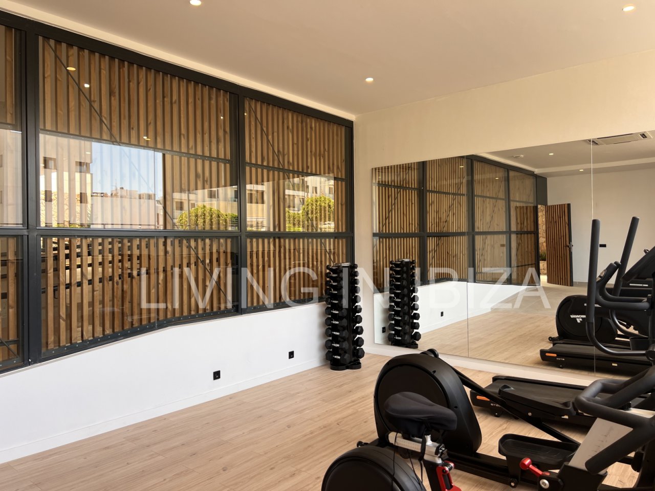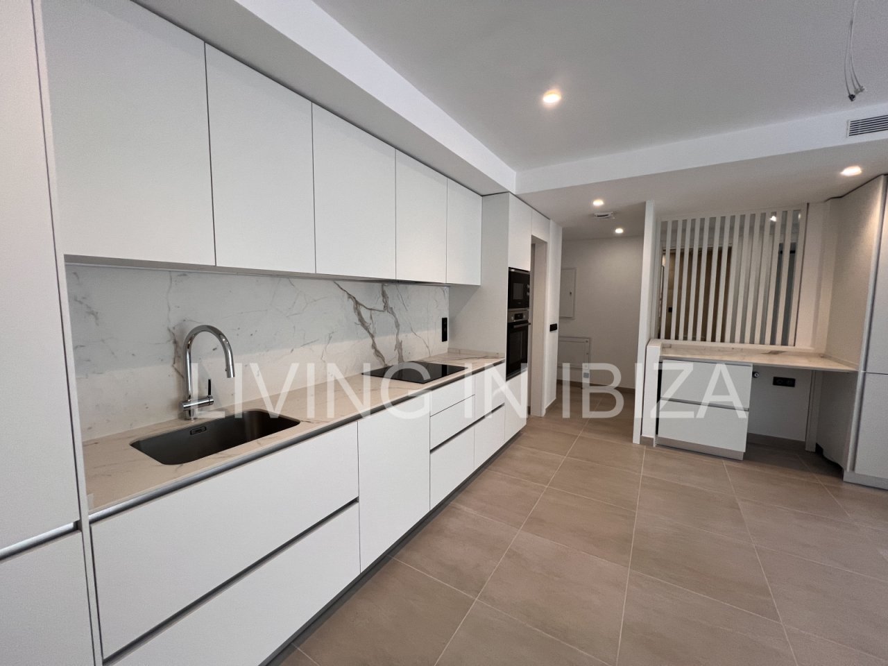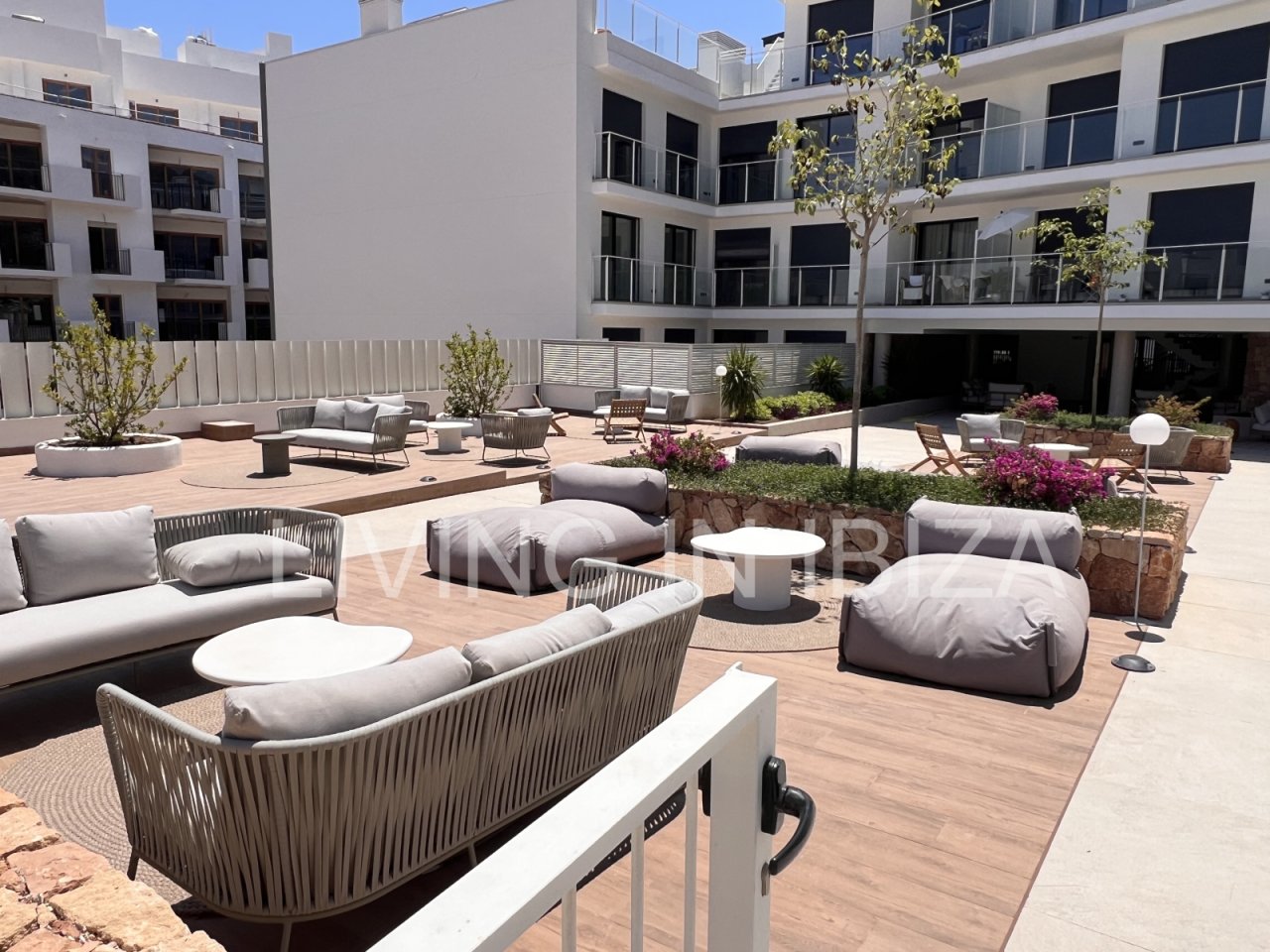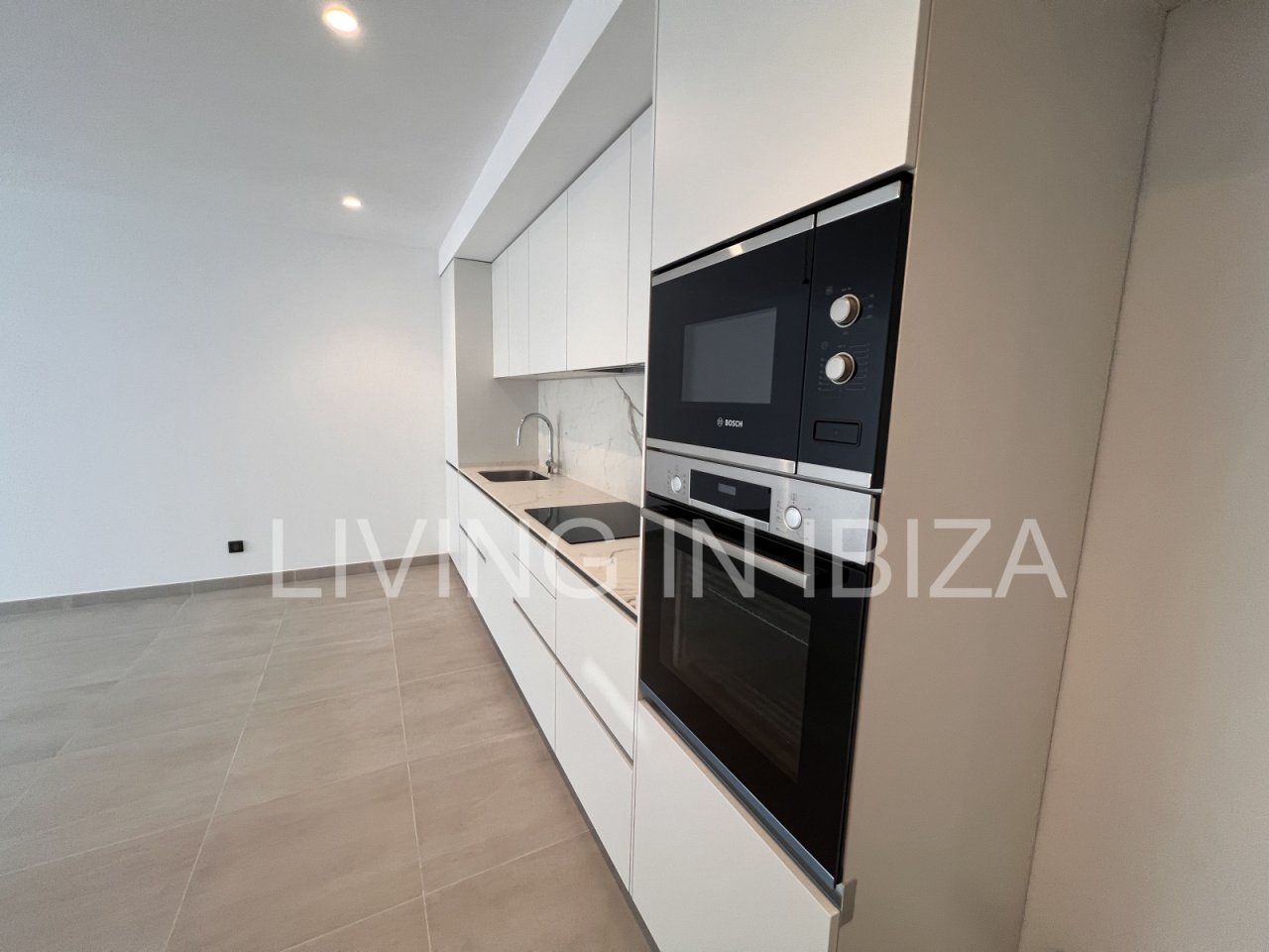 Urban style. Annual rent. Available from 15 July. This attractive, modern, unfurnished, newly built apartment is located in a residential complex with a communal pool in Santa Eulalia del Río, Ibiza. The property comes with a parking space and a storage room in the basement of the same building.