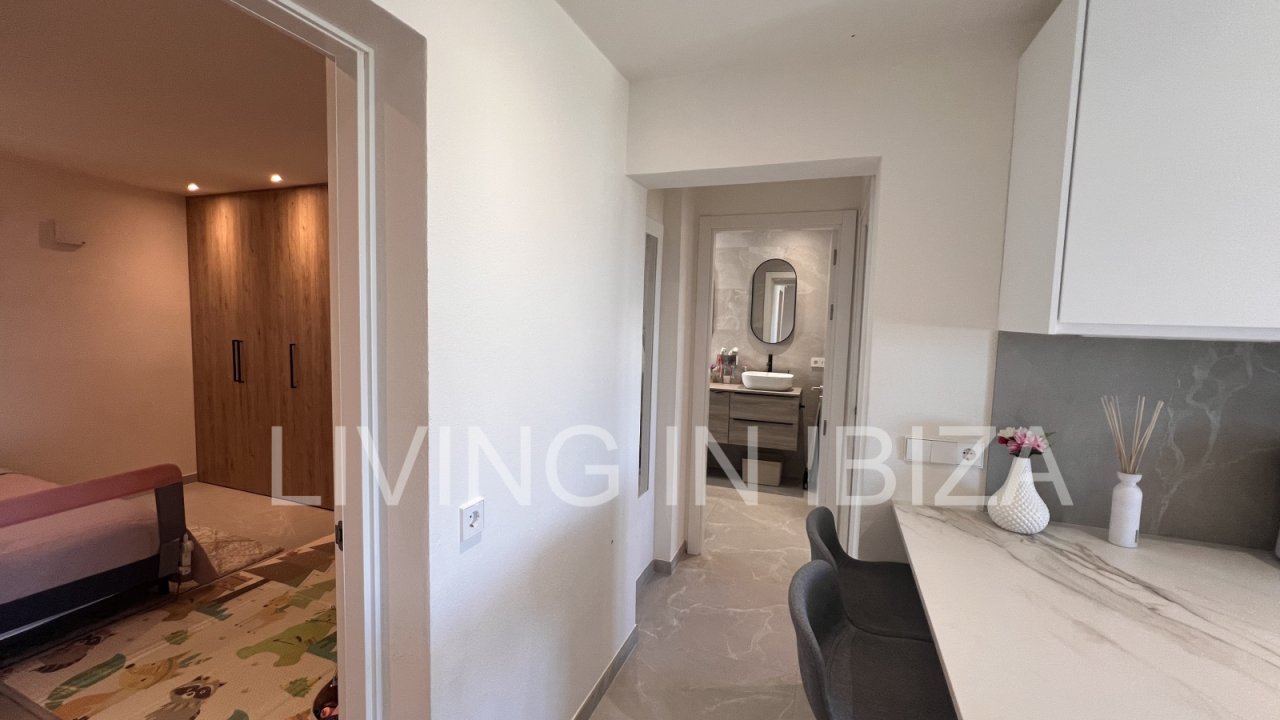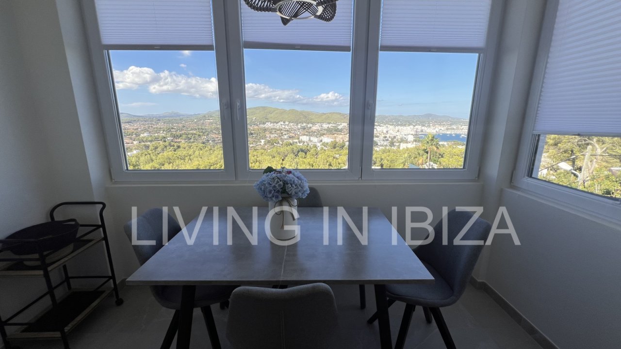 We present this exclusive penthouse in the quiet and sought-after area of Siesta in Ibiza. Access to the apartment is via stairs. Just a few minutes from the beach and surrounded by the island's natural beauty, this recently renovated apartment offers a modern and sophisticated atmosphere. Boasting an impressive private rooftop terrace with a relaxation area and barbecue, it is the perfect place to enjoy tranquillity, privacy and unparalleled views of Santa Eulalia Bay and the Mediterranean Sea.