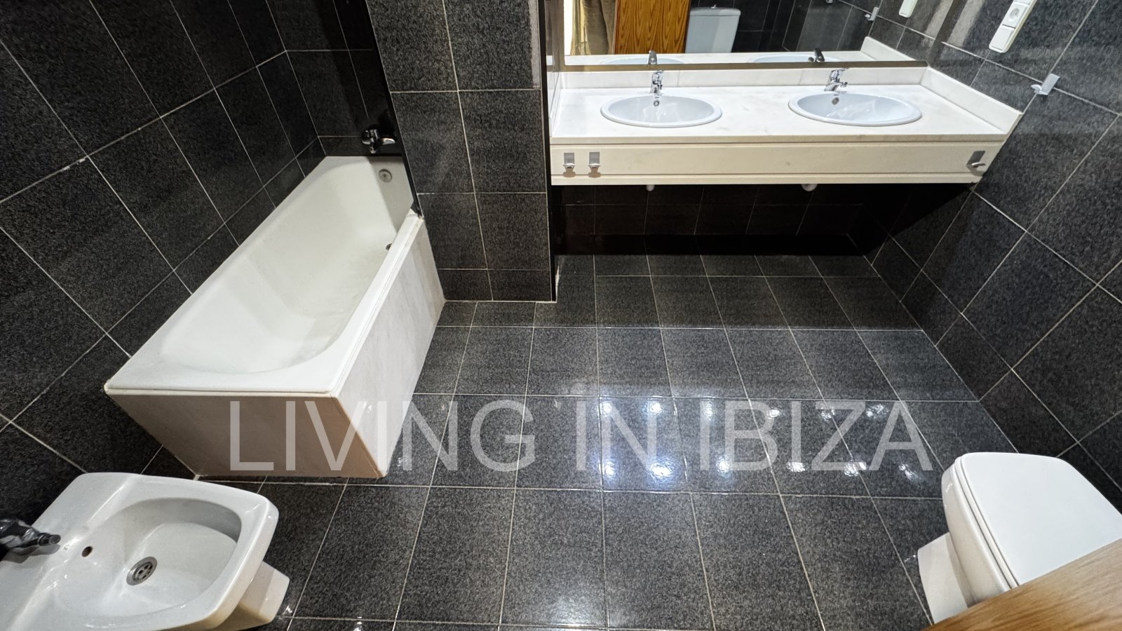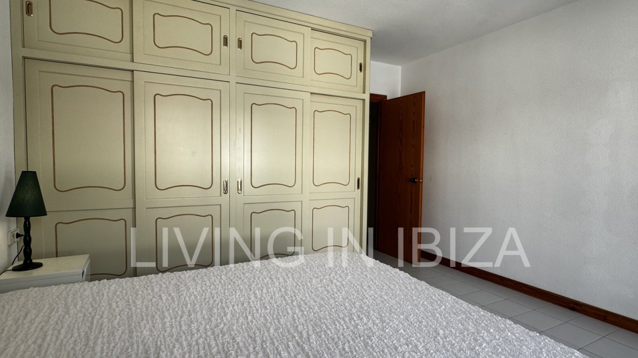 Long-term apartment rental. Available. Located in Santa Eulalia del Rio, Ibiza. It has sea views and underground parking.