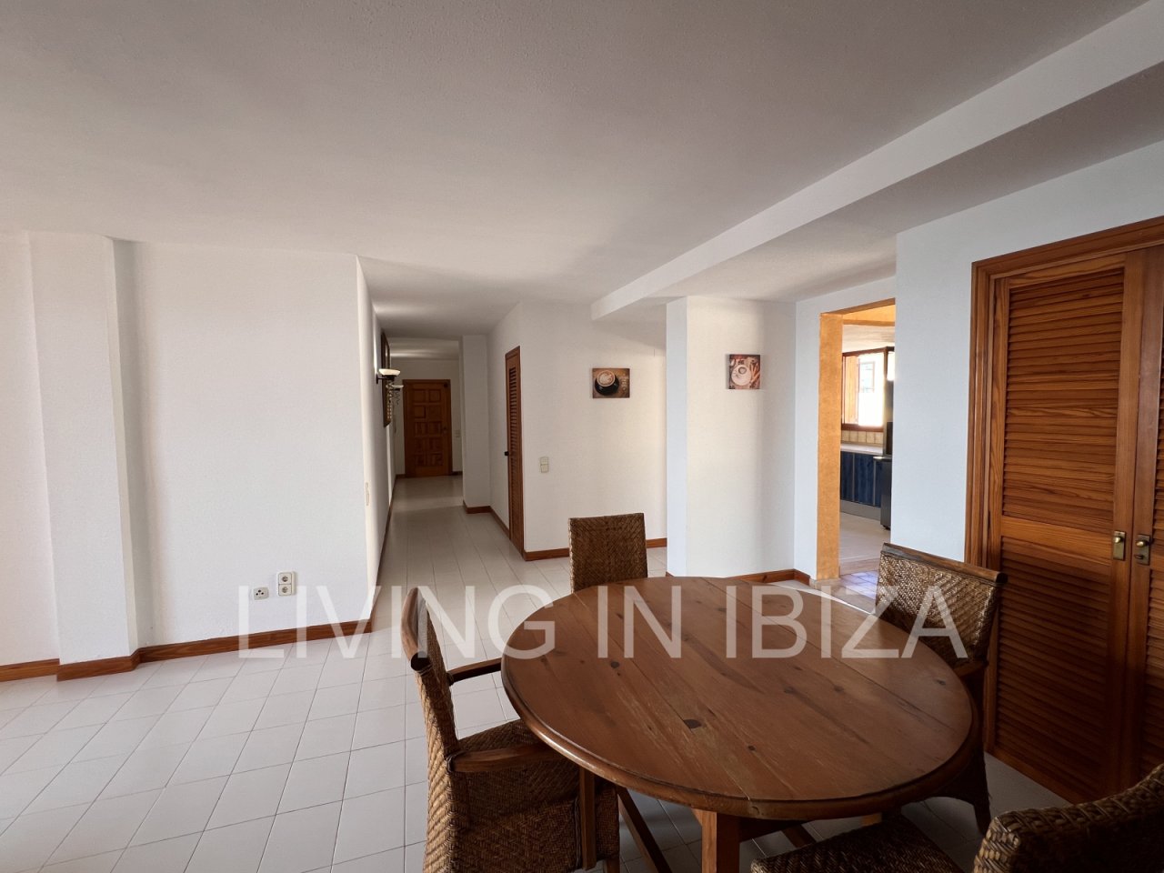 This property is very bright and is located in a sought-after area of the island. In Santa Eulalia, you will find everything you need without having to rely on a car. There are shops, supermarkets, restaurants, bars, cinemas, pharmacies, a post office, doctors and several organic shops in the immediate vicinity. The promenade and Santa Eulalia beach are only 30 metres away.