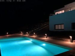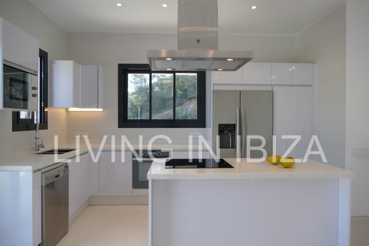 Anual/alquiler sin muebles. Villa moderna con piscina, en la zona de San Juan de Labritja, en el norte de la isla de Ibiza, sobre la ladera de una colina. Es una casa muy confortable y práctica, con estancias luminosas y grandes ventanales con maravillosas vistas abiertas hacia la naturaleza.