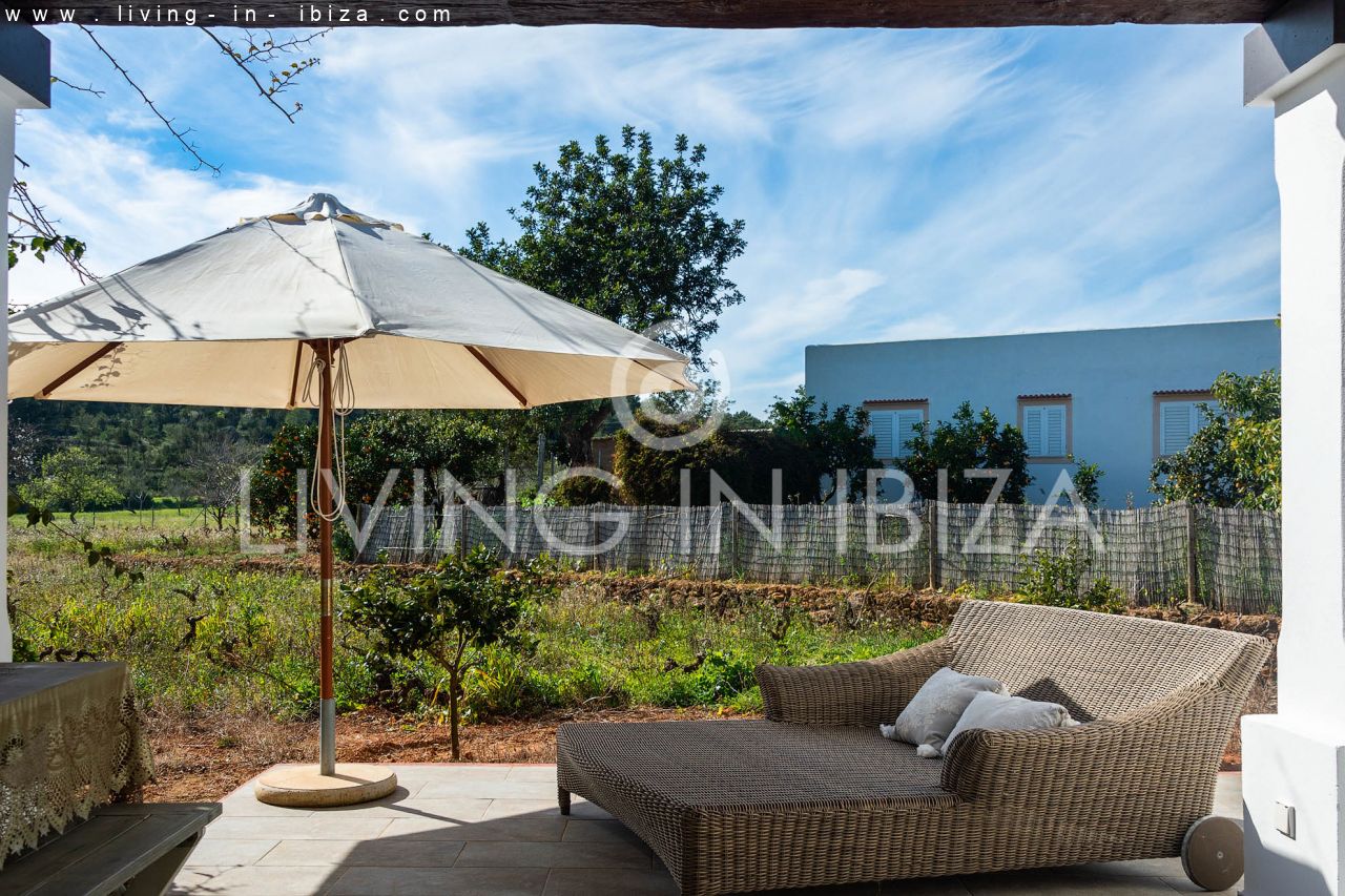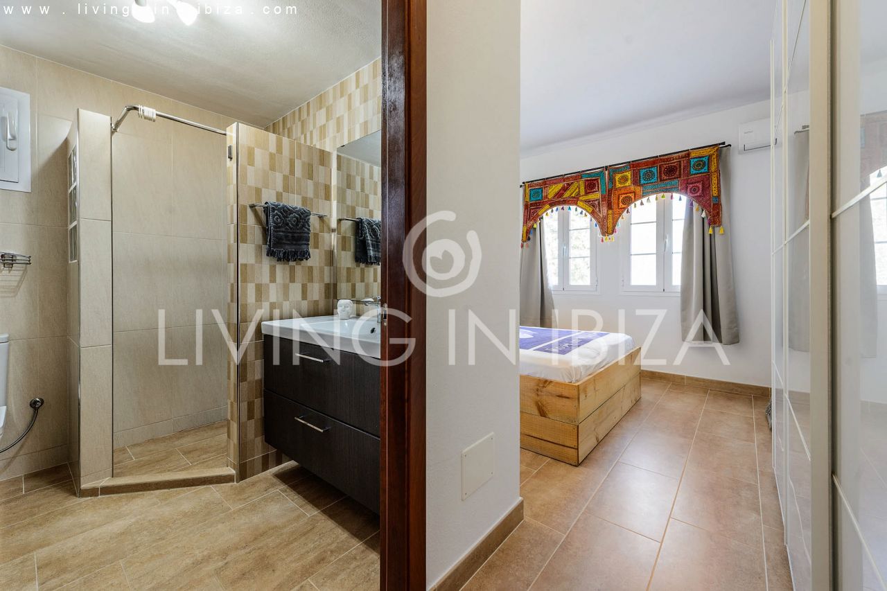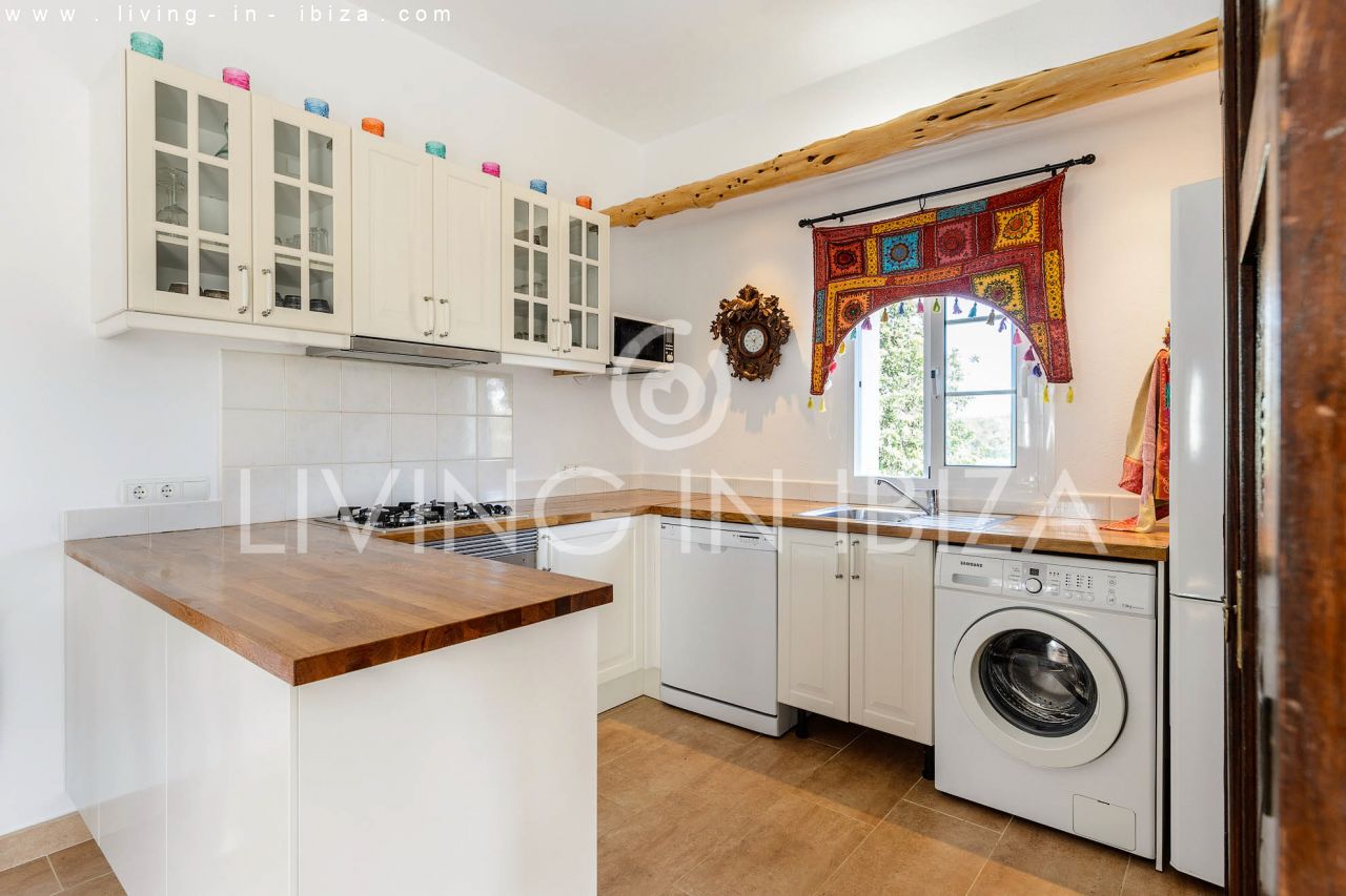 ALQUILER ANUAL/ LARGO PLAZO, Casa de campo estilo mediterráneo de seis años de antigüedad en Santa Gertrudis, Santa Eulalia del Río, Ibiza. Jardín con olivos, árboles frutales y piscina en zona tranquila. La casa está distribuida en 3 habitaciones, dos baños, (desde la habitación principal se puede acceder directamente a la piscina). La tercera habitación puede formar parte o no de la principal, ideal para vestidor, habitación de niño u oficina. Gran salón con chimenea, cocina americana con lavavajillas y lavadora, aire acondicionado frío/calor en todas las habitaciones. El acceso a la casa es a través de un portón eléctrico, hay un vecino cercano (pero igualmente con mucha privacidad), el terreno está vallado incluyendo a este vecino. Doble acristalamiento en carpintería de aluminio. El agua es de perforada y se calienta por energía solar. Terraza cubierta para disfrutar tanto de los días soleados, como de los días ventosos.…