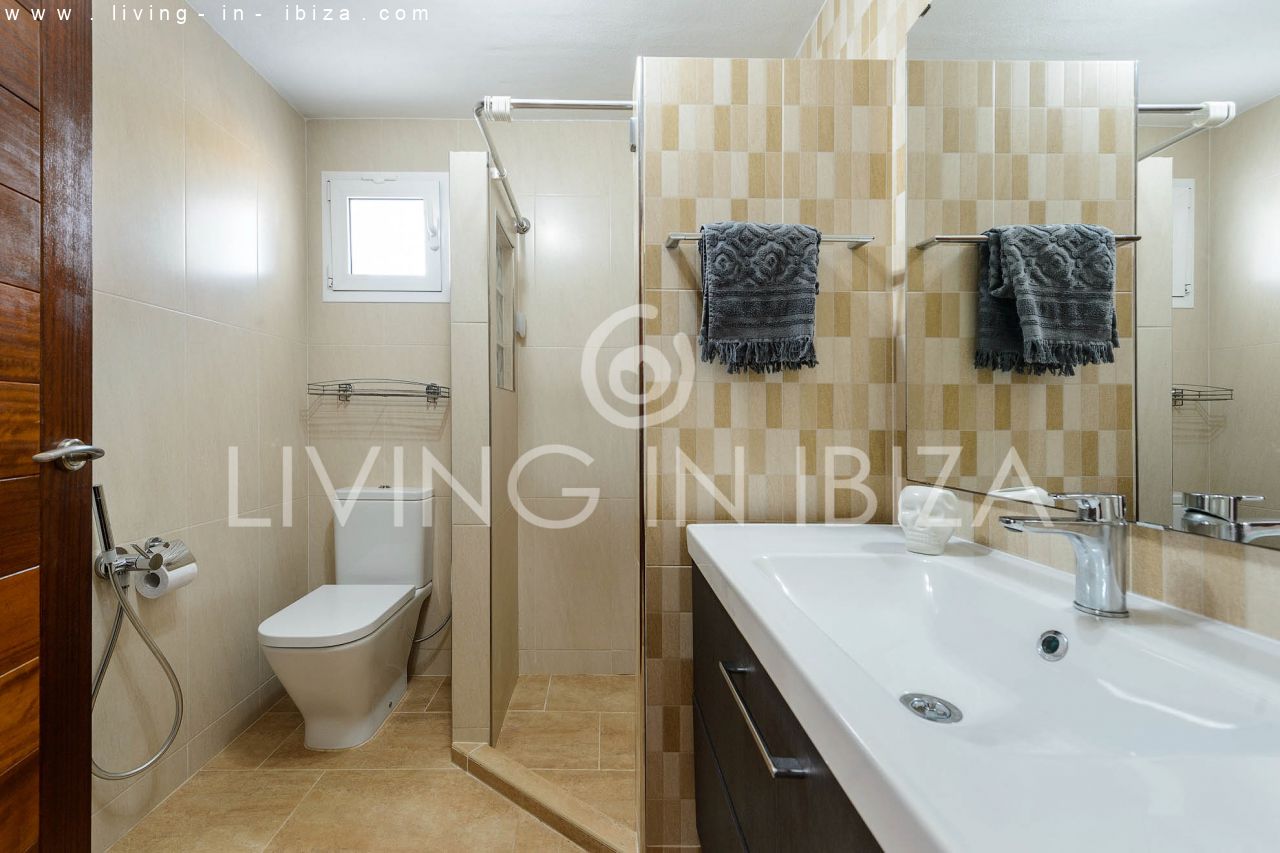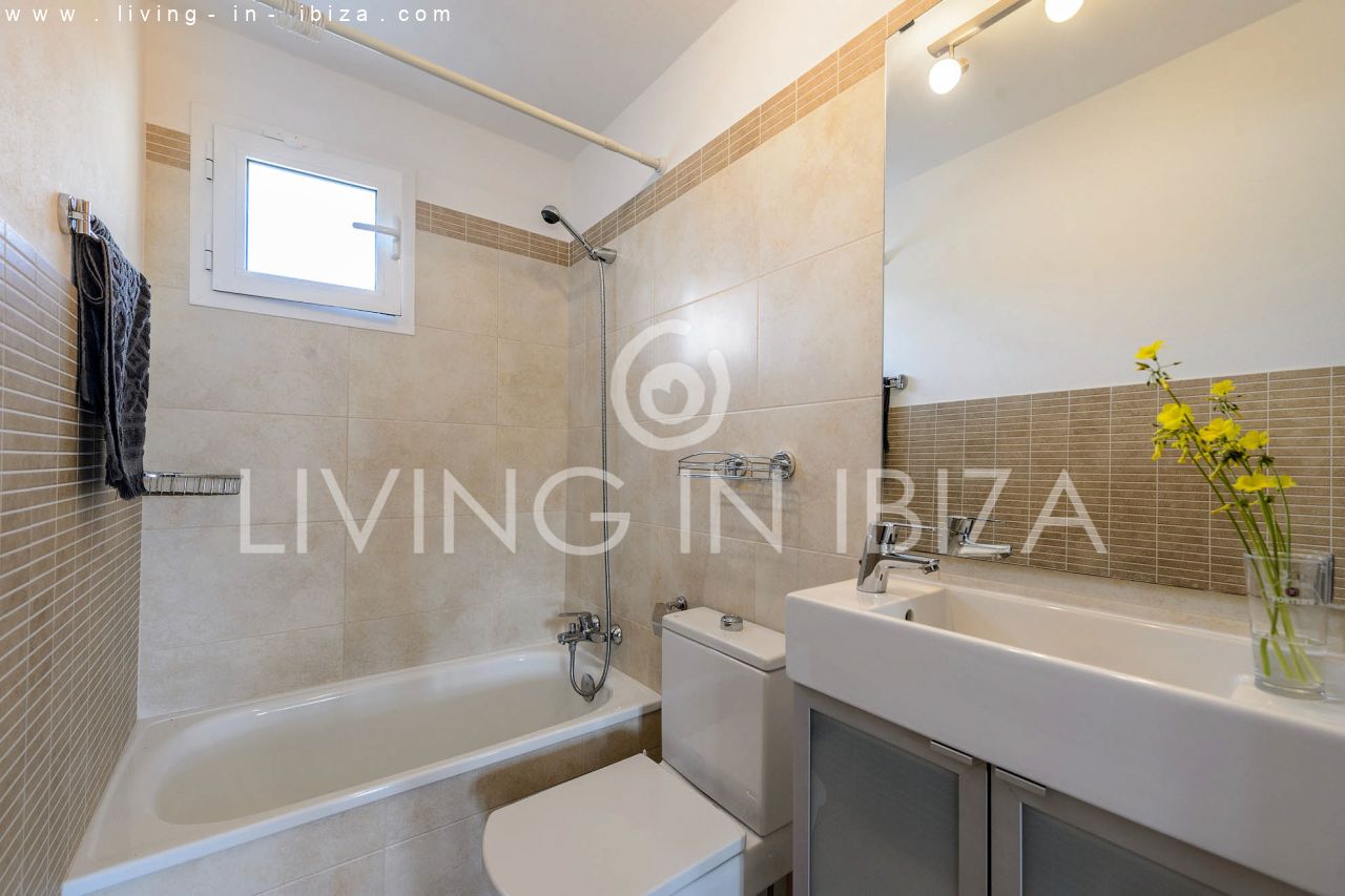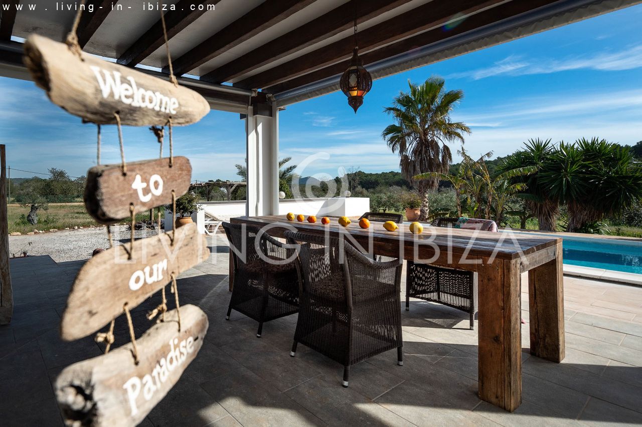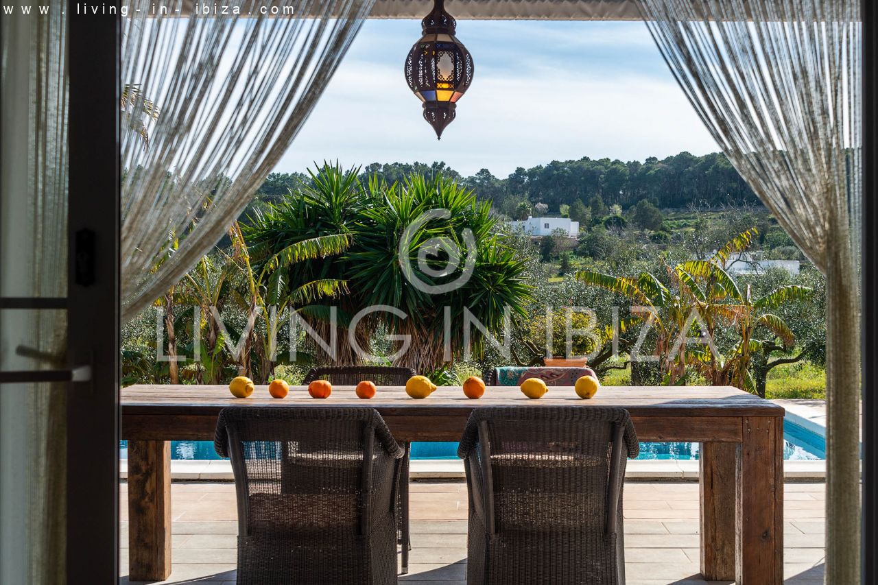 ALQUILER ANUAL/ LARGO PLAZO, Casa de campo estilo mediterráneo de seis años de antigüedad en Santa Gertrudis, Santa Eulalia del Río, Ibiza. Jardín con olivos, árboles frutales y piscina en zona tranquila. La casa está distribuida en 3 habitaciones, dos baños, (desde la habitación principal se puede acceder directamente a la piscina). La tercera habitación puede formar parte o no de la principal, ideal para vestidor, habitación de niño u oficina. Gran salón con chimenea, cocina americana con lavavajillas y lavadora, aire acondicionado frío/calor en todas las habitaciones. El acceso a la casa es a través de un portón eléctrico, hay un vecino cercano (pero igualmente con mucha privacidad), el terreno está vallado incluyendo a este vecino. Doble acristalamiento en carpintería de aluminio. El agua es de perforada y se calienta por energía solar. Terraza cubierta para disfrutar tanto de los días soleados, como de los días ventosos.…