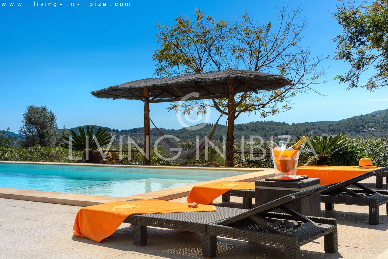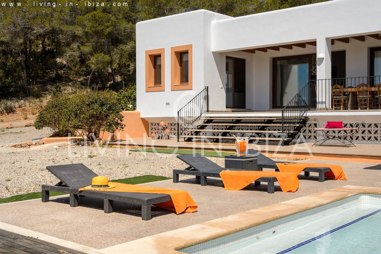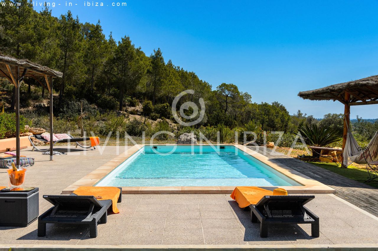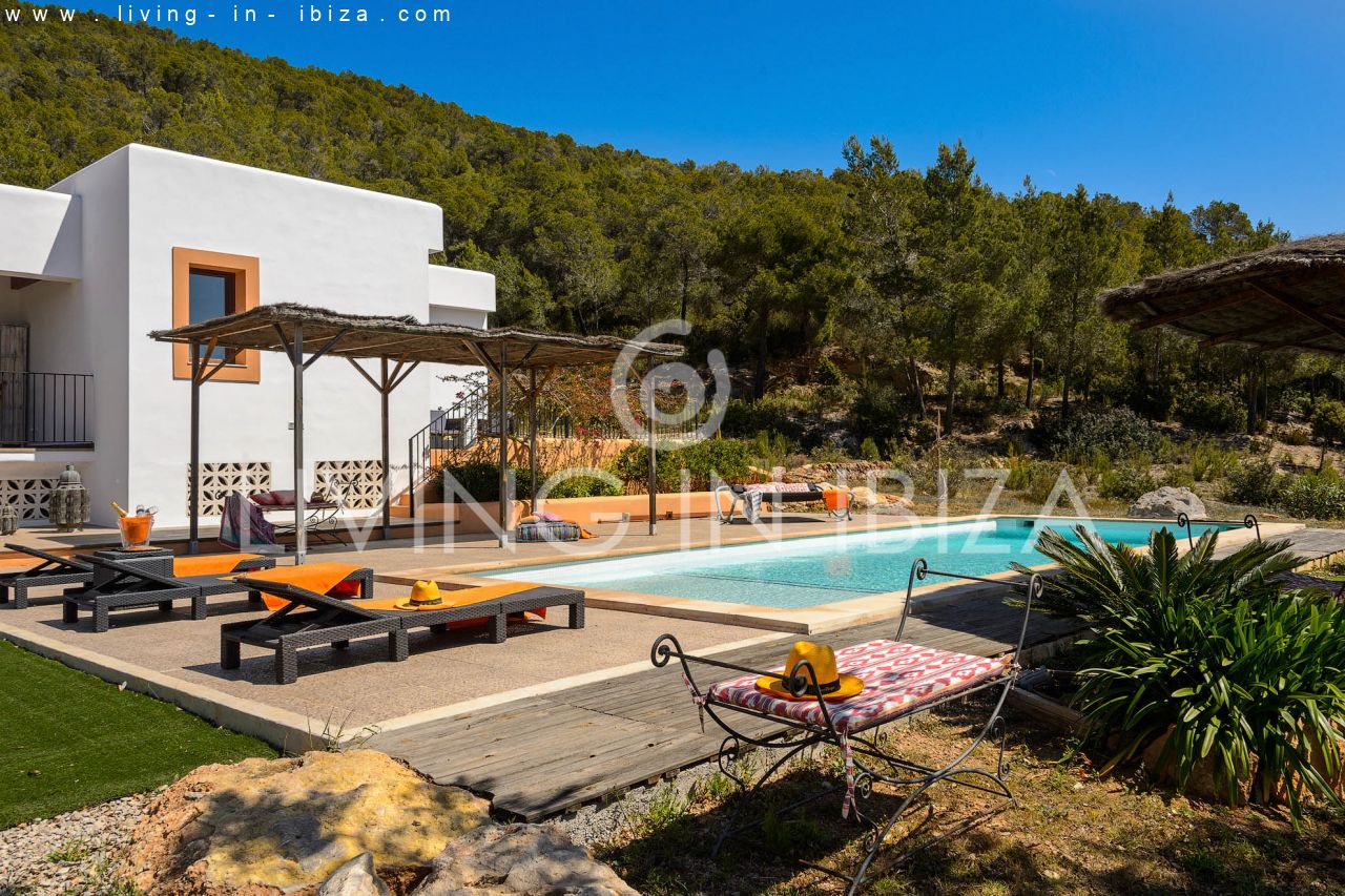 Alquiler anual / Contrato a largo plazo. Fantástico chalet en el campo con piscina, en San Carlos, Santa Eulalia del Río, Ibiza. Junto a un bosque.
