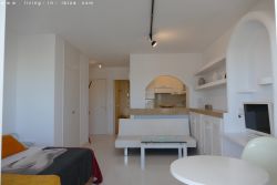 Alquiler de temporada / temporal de 6 a 8 meses acogedor studio - monoambiente en primera línea sobre el Paseo Marítimo de Santa Eulalia, Ibiza, fantásticas vistas al mar y Formentera, como también hacia el Puerto Deportivo. Totalmente renovado y muy luminoso, amueblado en colores claros, predominando el blanco, muy característico de la isla. Este studio se encuentra a pocos metros de la playa, en el centro de la capital del municipio, en donde encontrará todo lo que necesite: supermercados, tiendas, farmacias, correos, peluquerías, etc.