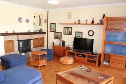 Amplio salón con chimenea y aire acondicionado