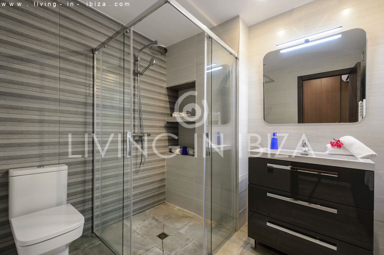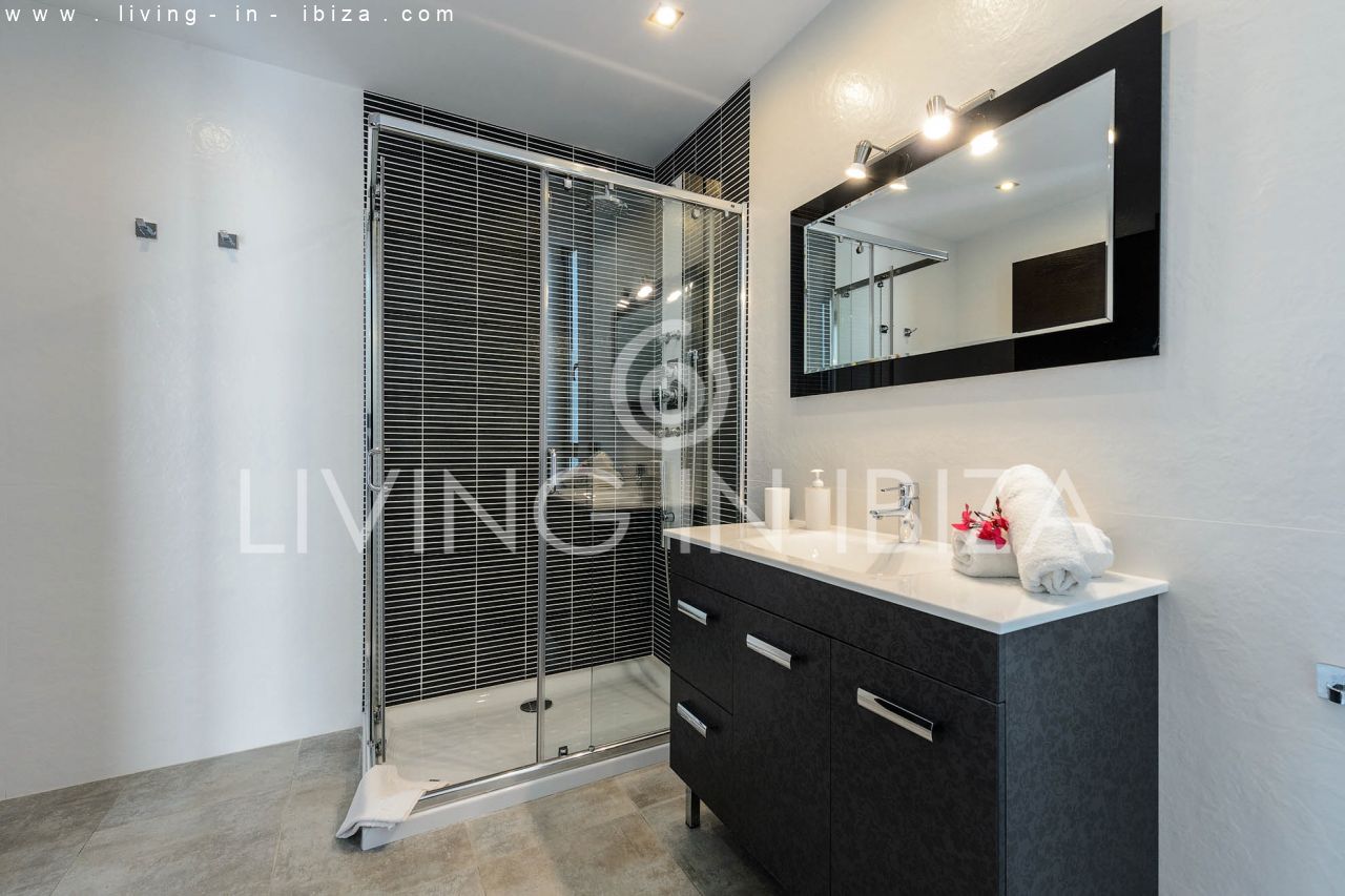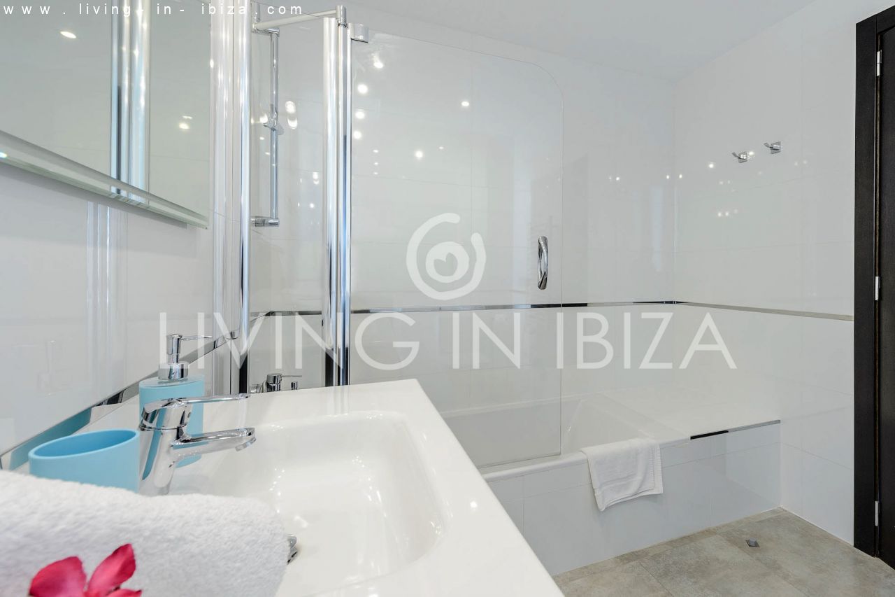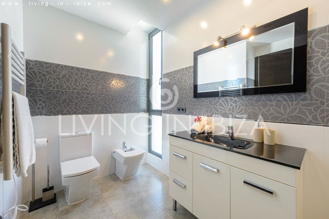Se alquila todo el año / Contrato largo plazo. Villa East Coast, en la zona de Cala Llenya, Ibiza. Orientación Sudeste. Estilo mediterráneo, moderno con impresionantes vistas hacia el mar y zonas verdes. Piscina, terraza cubierta y descubierta. Doble acristalamiento, aberturas de aluminio. Garaje muy amplio en el sótano. Calefacción central. Aire acondicionado frío/calor, suelo radiante eléctrico.