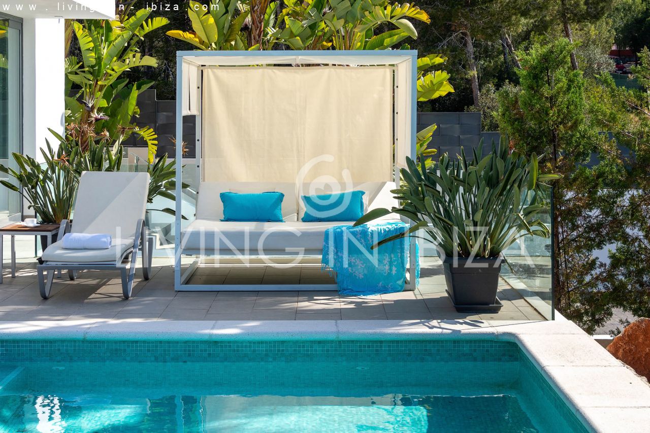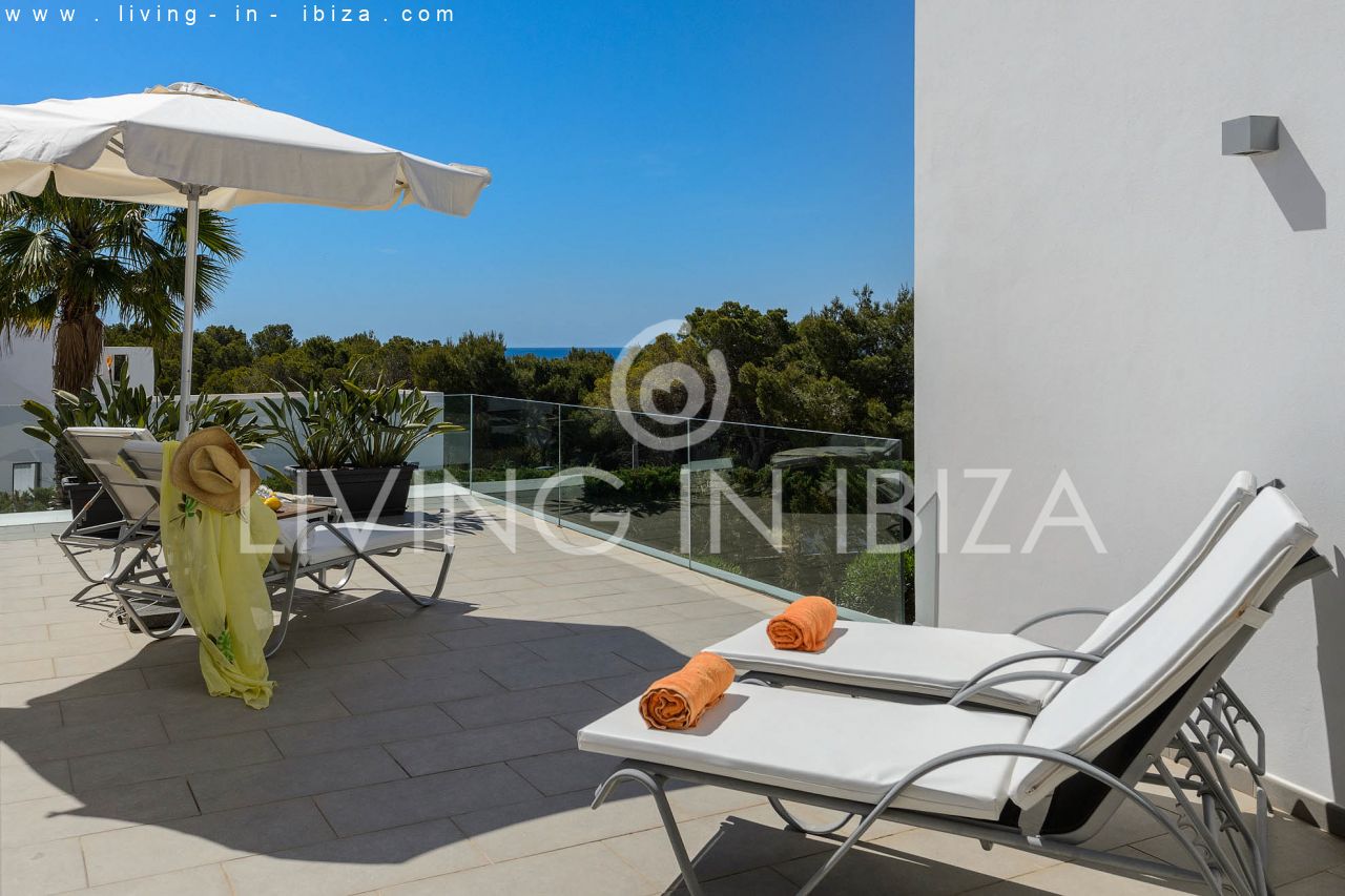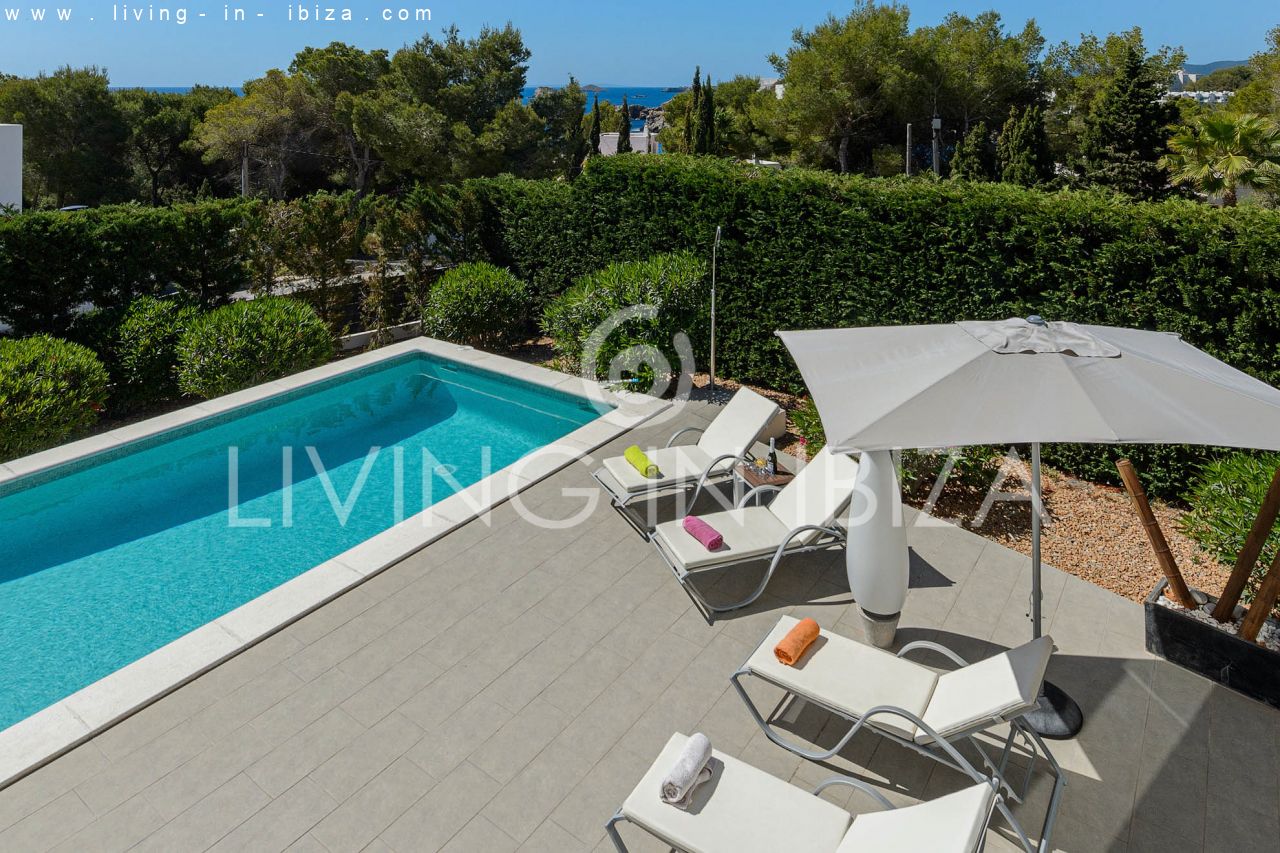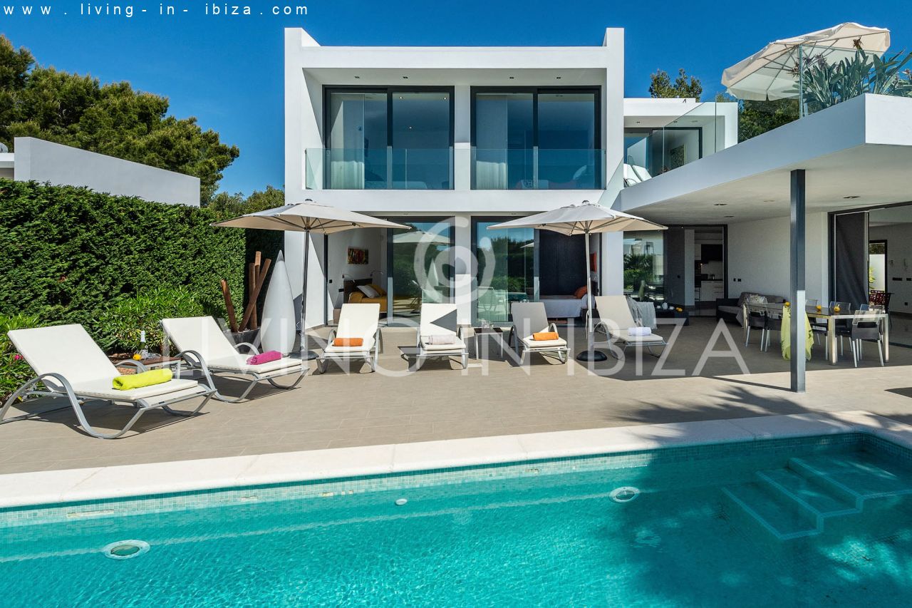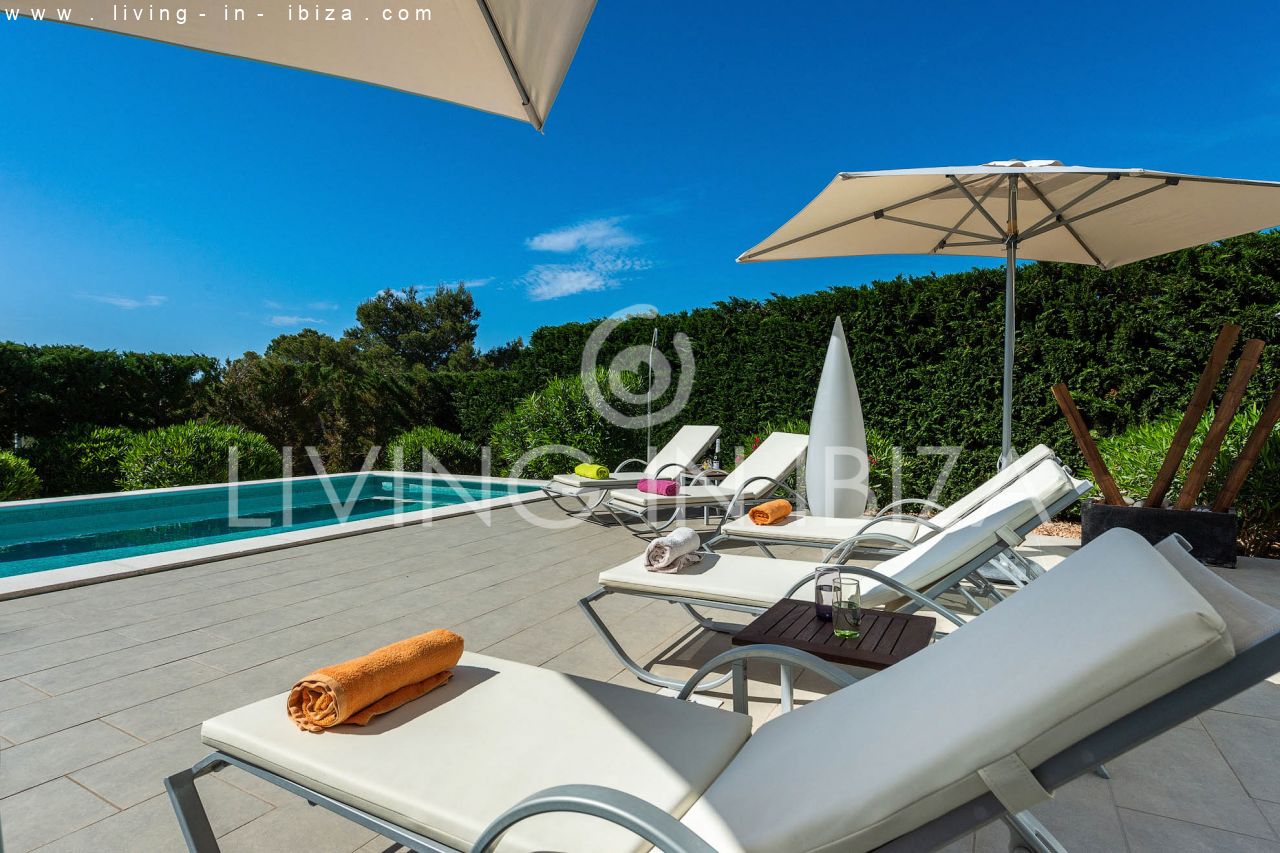 Se alquila todo el año / Contrato largo plazo. Villa East Coast, en la zona de Cala Llenya, Ibiza. Orientación Sudeste. Estilo mediterráneo, moderno