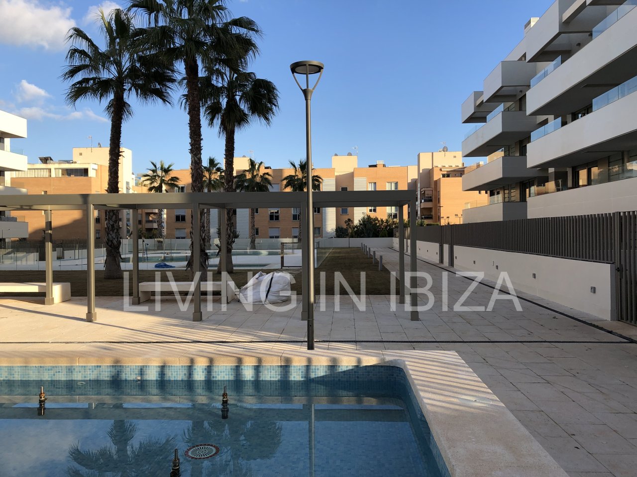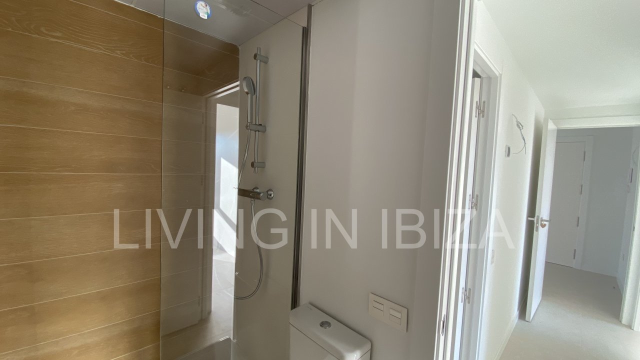 Se encuentra en una urbanización de nueva construcción con piscina comunitaria, parque infantil, jardines y gimnasio. Cuenta con todas las comodidades de una vivienda nueva, incluyendo cocina equipada con electrodomésticos Siemens, calefacción central por suelo radiante, aire acondicionado central con bomba de calor y persianas. Está a pocos pasos del centro comercial y de las instalaciones de ocio de la ciudad de Ibiza. Goza de una ubicación privilegiada, en una zona tranquila y bien comunicada. La cocina y uno de los dormitorios dan al norte, mientras que los otros dos dan al sur. La vivienda es muy luminosa.…