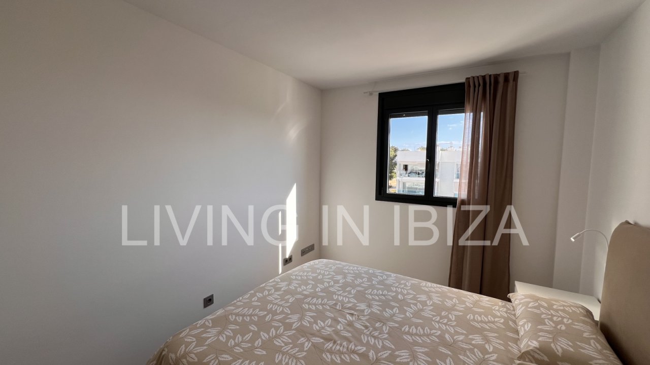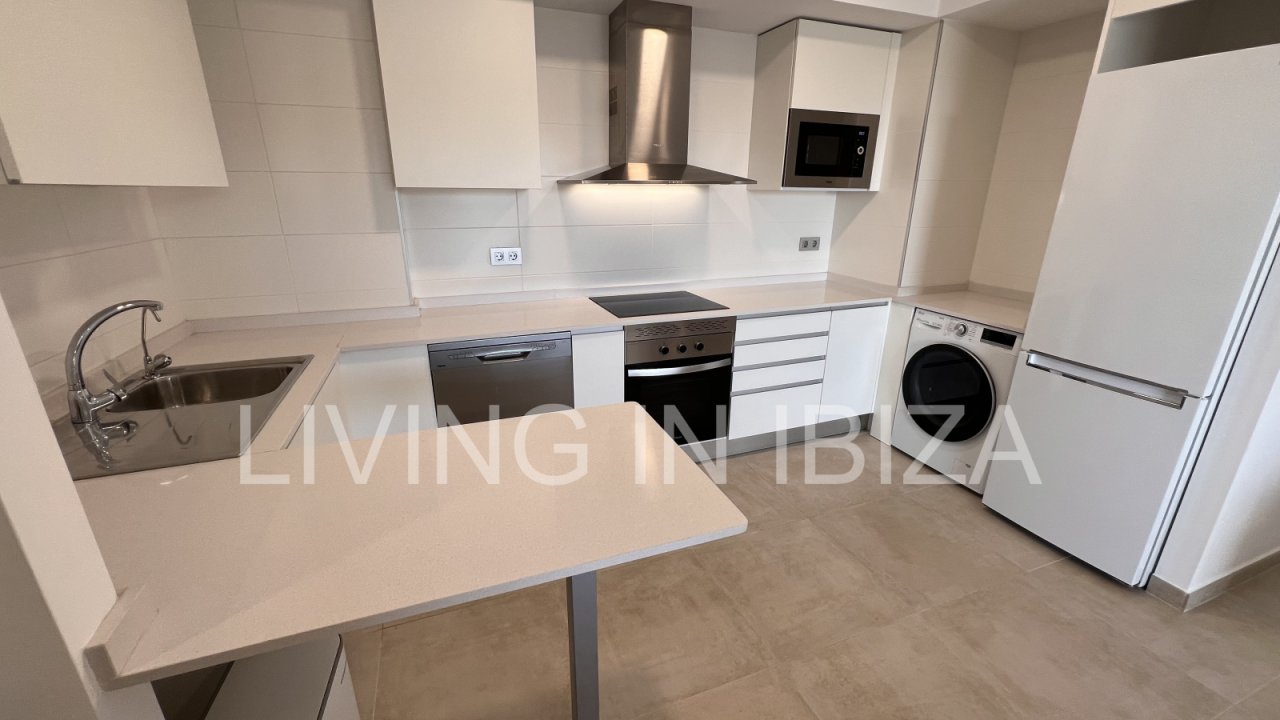 TEMPORADA. Se alquila por temporada a partir del 1 de marzo de 2025. Penthouse Tagomago es un ático moderno y atractivo en una lujosa urbanización de Santa Eulalia del Río. Cuenta con una fantástica terraza privada en la azotea, piscina comunitaria, plaza de aparcamiento y trastero.