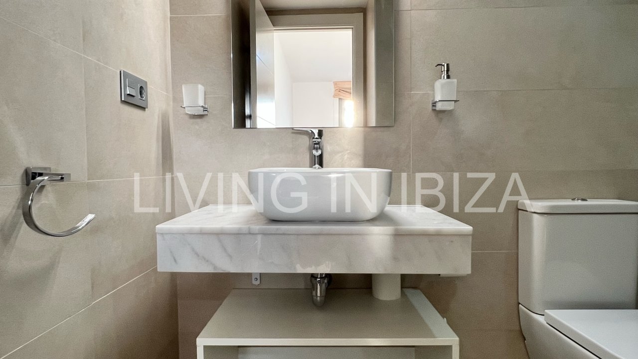 Este fantástico piso es ideal para vivir todo el año. También es una solución práctica para los amantes de Ibiza que deseen tener una segunda residencia o un apartamento en la ciudad, ya que es una de las zonas con más actividad durante todo el año. Se encuentra a pocos pasos de la parada de autobús, restaurantes, negocios, cine, farmacias, parada de taxis, oficina de correos, mercado, supermercados y la maravillosa playa de arena, donde podrá practicar varios deportes acuáticos.
