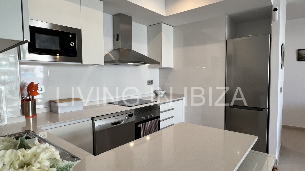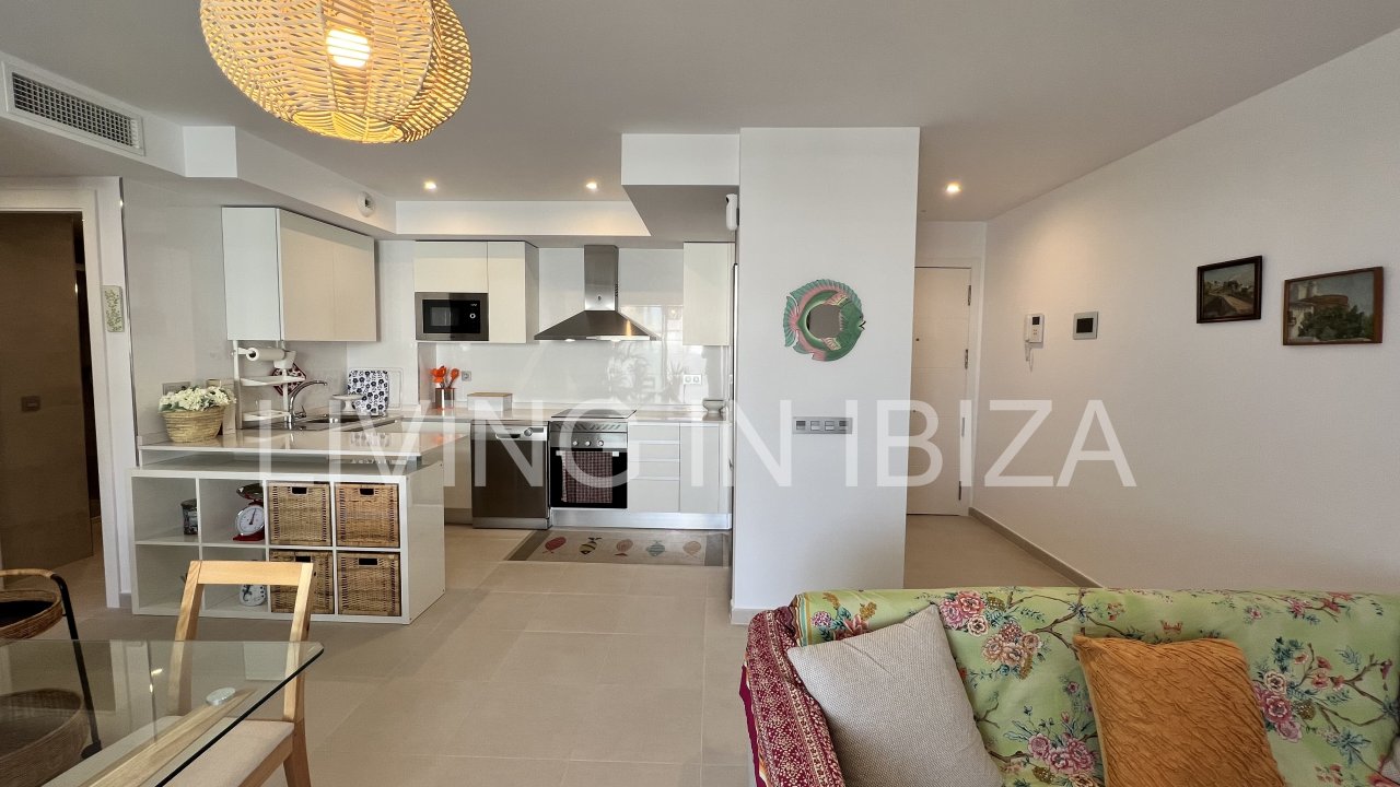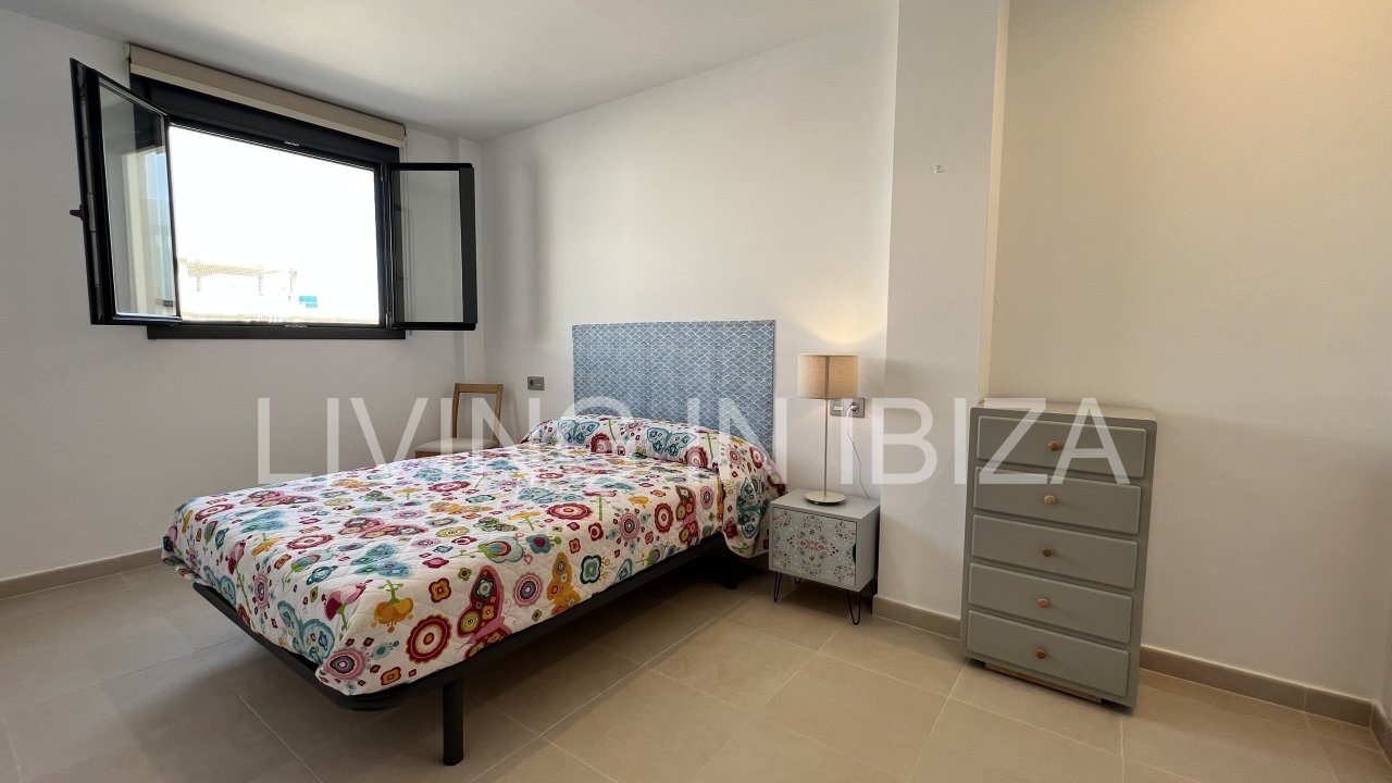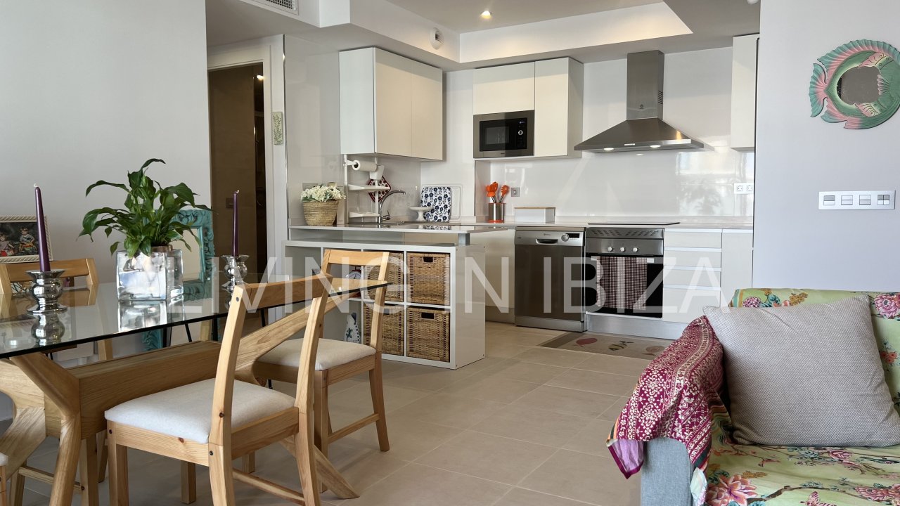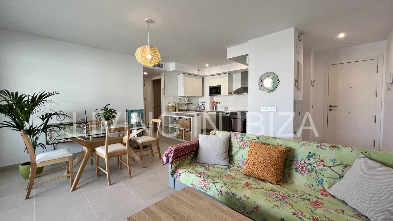 Este fantástico piso es ideal para vivir toda la temporada de verano. También ofrece una solución práctica para aquellos amantes de Ibiza que deseen tener un pied-à- terre en la isla de Ibiza dentro de una de las ciudades de la isla en donde encontrará actividad durante todo el año. A pocos pasos de la parada de autobús, restaurantes, negocios, cine, farmacias, parada de taxis, correo, mercado, supermercados y la maravillosa playa de arena, donde podrá practicar varios deportes acuáticos.