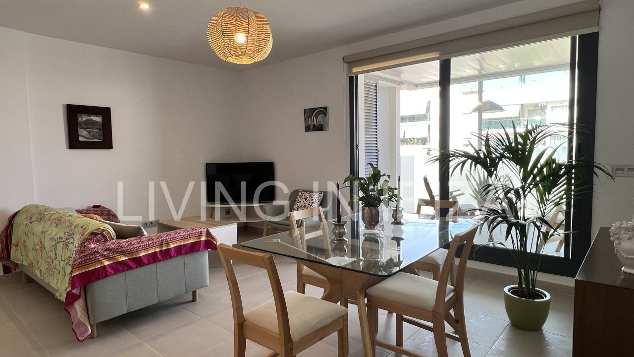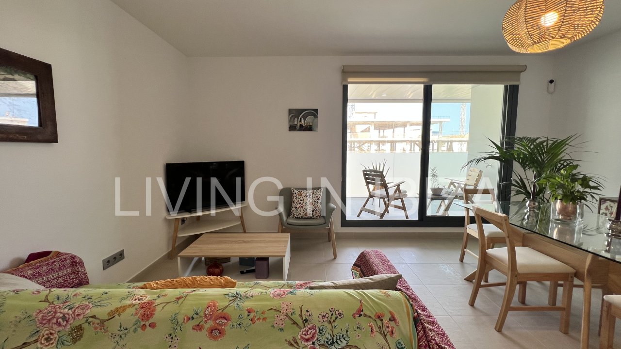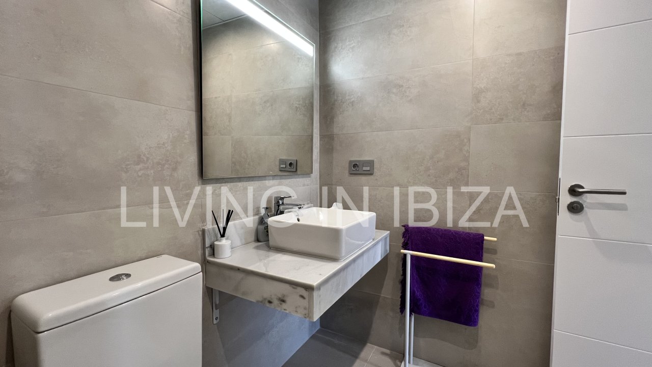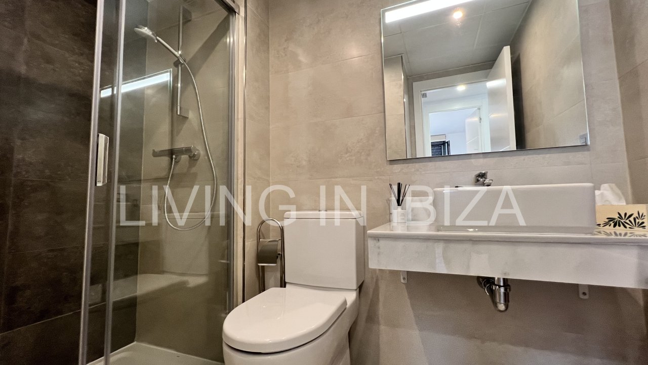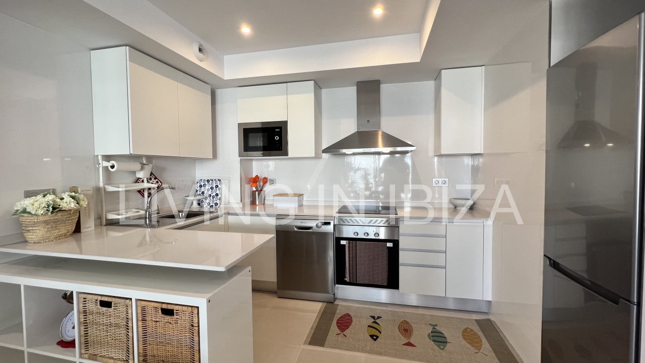 Este fantástico piso es ideal para vivir toda la temporada de verano. También ofrece una solución práctica para aquellos amantes de Ibiza que deseen tener un pied-à- terre en la isla de Ibiza dentro de una de las ciudades de la isla en donde encontrará actividad durante todo el año. A pocos pasos de la parada de autobús, restaurantes, negocios, cine, farmacias, parada de taxis, correo, mercado, supermercados y la maravillosa playa de arena, donde podrá practicar varios deportes acuáticos.