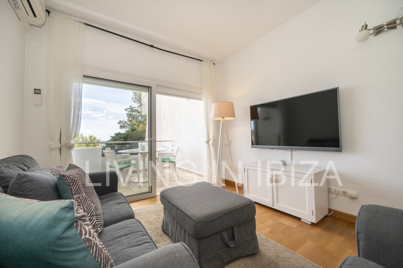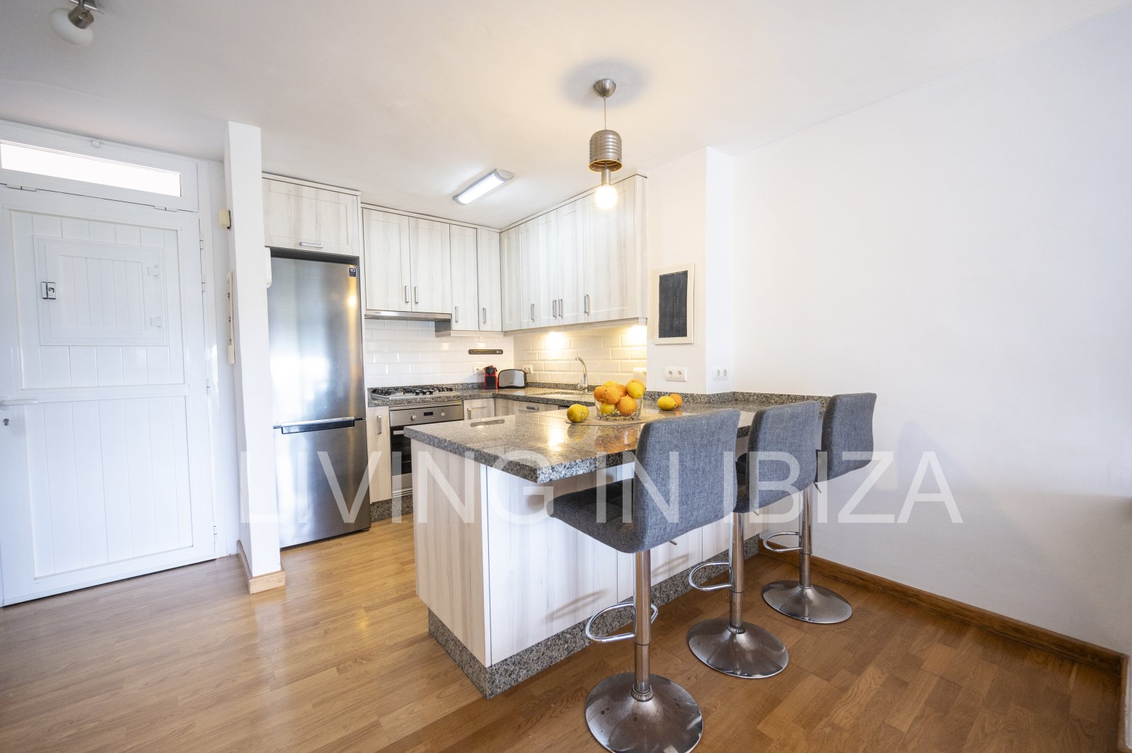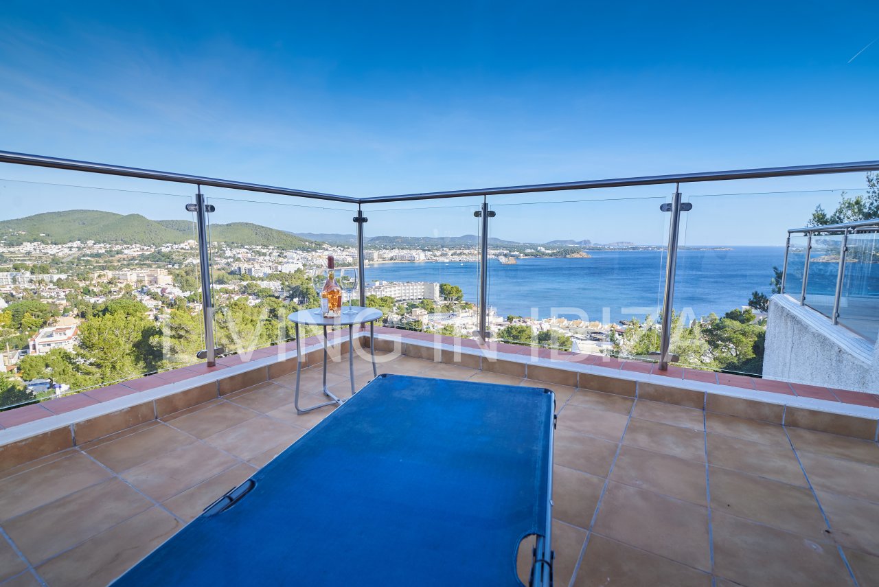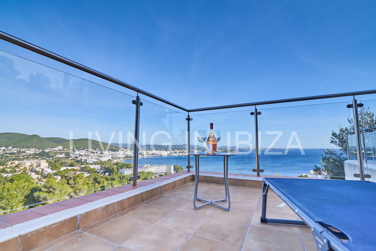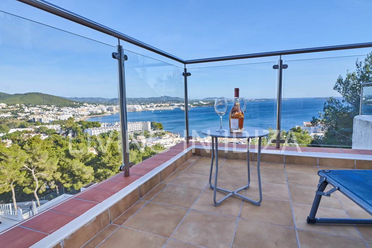 SE VENDE Casa Sol y Mar. Adosado en Siesta, Santa Eulalia, Ibiza. Vistas al mar, estudio con posibilidad de entrada independiente, gran terraza con barbacoa y excepcionales vistas al mar.