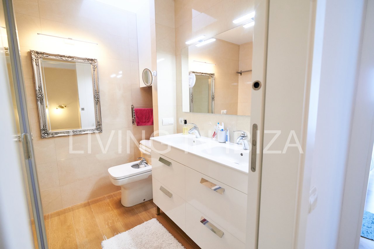 A 15 minutos a pie de Santa Eulalia del Río, a tan sólo 21 km del aeropuerto de Ibiza. Es un lugar muy apreciado por familias y personas que buscan vivir tranquilamente. Aquí encontrará varios restaurantes (en el pueblo, Paseo Marítimo, calle de los restaurantes y puerto deportivo), además de exclusivas tiendas y galerías de arte.