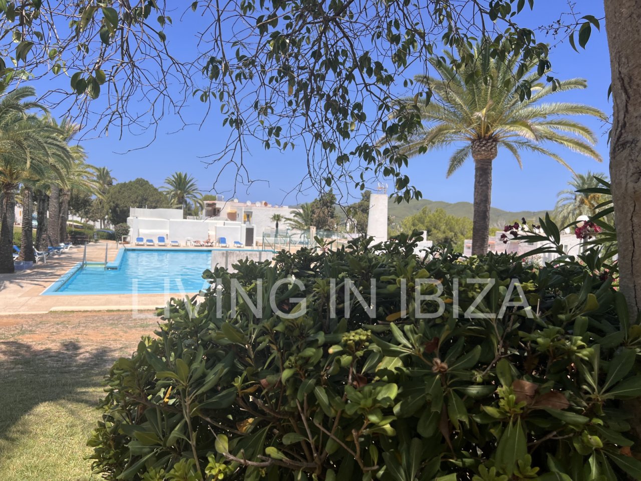 Encantador apartamento situado en Siesta, Santa Eulalia del Río, en la zona este de la isla de Ibiza. Ofrece vistas espectaculares a los jardines comunitarios y, a lo lejos, al mar Mediterráneo. Ubicado en una urbanización tranquila que cuenta con tres piscinas y amplias zonas ajardinadas.