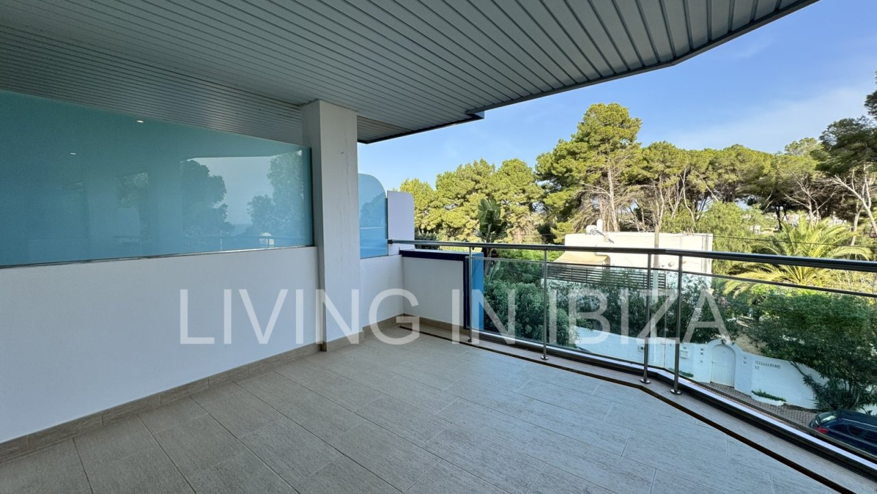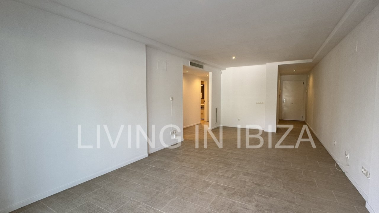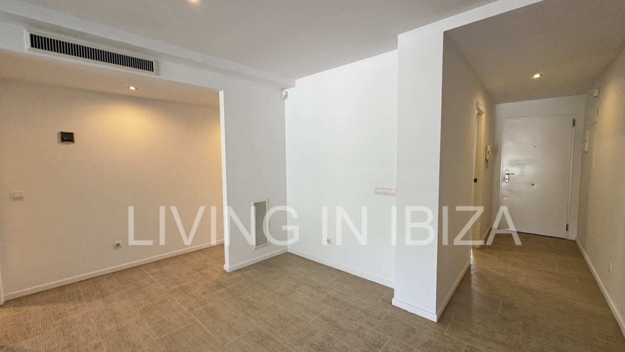 Bonito apartamento de 2 habitaciones y dos baños situado estratégicamente en zona tranquila de Santa Eulalia, muy cercano a la playa y a escasos minutos caminando del centro del pueblo, tiendas, restaurantes y zona de ocio. Rápido acceso a supermercados. Vista lateral al mar. cuenta con gran piscina comunitaria y zonas ajardinadas. Alquiler de largo plazo, anual. Sin muebles