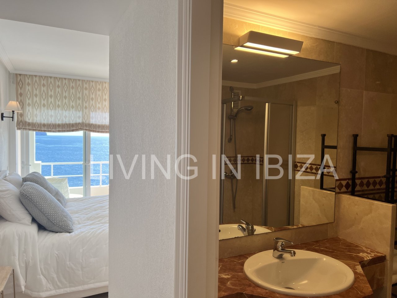 Exquisito apartamento a la venta, con vistas a la bahía de Cala Llenya, en la isla de Ibiza. Imperdible